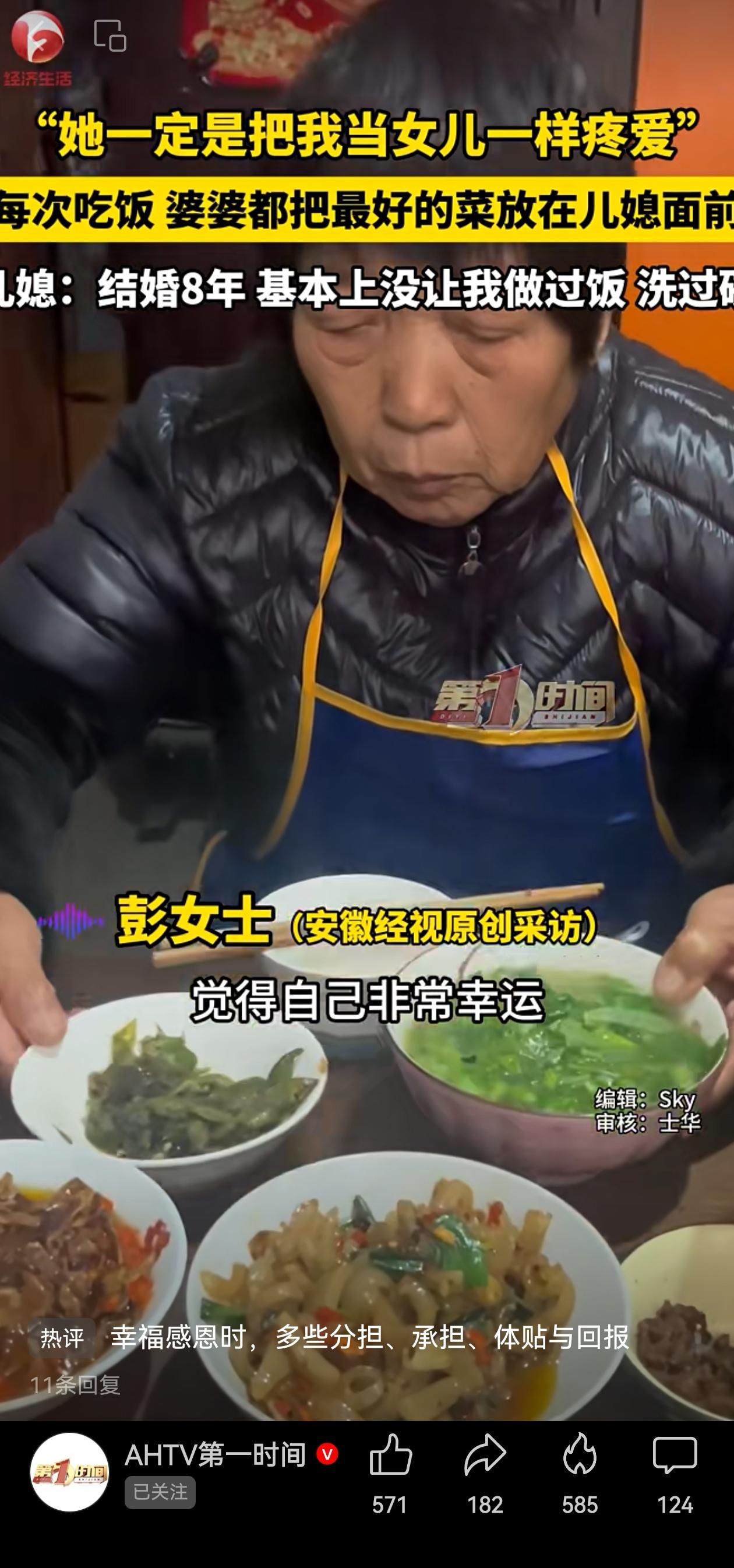 好婆婆!湖南湘潭的一个儿媳妇分享自己的婆婆,说自己远嫁到湘潭,结婚8年,婆婆几乎从不让她做饭、洗碗,家务全是自己做。 吃饭时,婆婆总会把最好的菜挪到她面前,把剩菜放在自己前面,这一举动已成习惯,坚持了8年。这位儿媳妇被婆婆感动到了,说婆婆一定是把她当亲女儿疼爱。 到这个新闻,真的心头一暖。吃饭时婆婆自然地把好菜推到你面前,自己默默吃剩菜。这个细节装不出来,如果没有日积月累出来的真心。 媳妇把这一切记在心里,公开感恩,这份“领情”同样珍贵,完成了情感的双向流动。 这对婆媳演绎了婆媳相处的之间的智慧,婆婆真心对儿媳,媳妇不把付出视为应当。彼此都看得见对方的体贴。 媳妇用尊重“养”出来好婆婆;婆婆用真心“换”来好媳妇。这种良性循环里,没有委屈的自我牺牲,只有自然而然的彼此成全。 说实话,连亲妈都不一定能做到这样日复一日、毫无怨言的细致呵护吧?当善意遇上感恩,两个原本陌生的人,竟能创造出比血缘更坚韧的情感联结。 真心换真心,在哪个时代、哪个家庭都是最朴素的真理吧? 信息来源:AHTV第一时间