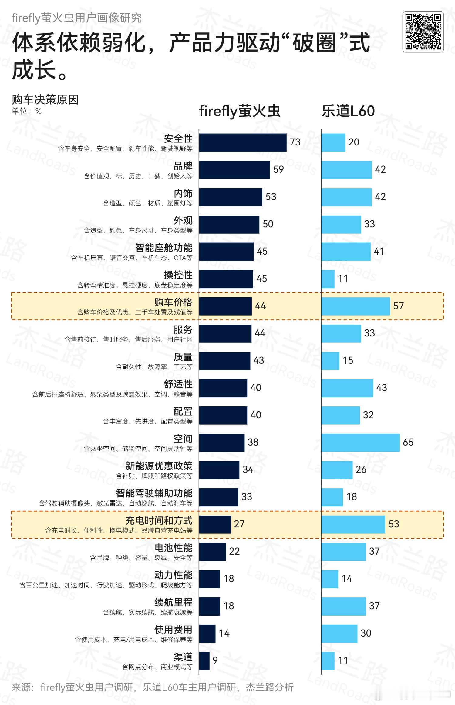 萤火虫车主主要对比的车型集中于smart 1、大众ID.3、电动MINI Cooper等具有鲜明个性标签与品牌溢价特征的都市纯电车型,整体竞品结构偏向“精品化小车”阵营。