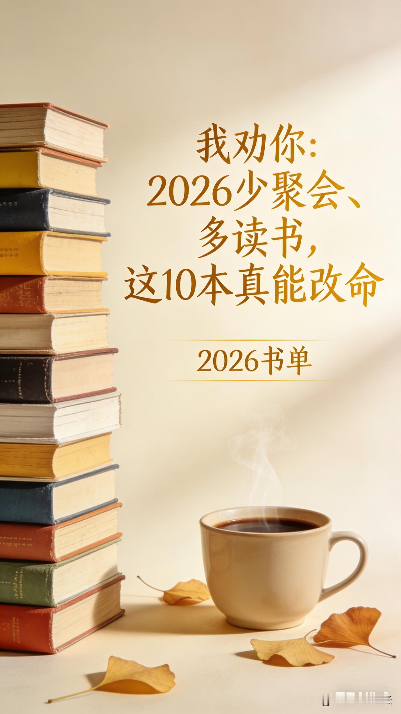 别再瞎忙了!读懂这我劝你:2026少聚会、多读书,这10本真能改命 很多人退休后,把时间花在应酬、攀比、无效社交上, 越活越累,越活越焦虑。 其实人到中年, 真正能救你的,从来不是人脉,不是热闹, 而是你脑子里的认知、心里的底气。 2026年,不用追着别人跑, 安安静静把这10本书读透, 心态稳了,眼界宽了,日子自然顺了。 1. 《被讨厌的勇气》——不讨好、不内耗,活得自在 2. 《断舍离》——清理生活,更清理情绪垃圾 3. 《非暴力沟通》——好好说话,少生很多气 4. 《人生海海》——与遗憾和解,放下才是解脱 5. 《平凡的世界》——普通人,也能活得有力量 6. 《皮囊》——看清什么才是真正重要的 7. 《慢煮生活》——在烟火里,把日子过甜 8. 《人性的弱点》——看懂人心,少走弯路 9. 《要有光》——心里有光,生活就不会灰暗 10. 《活着》——历经风雨,依然热爱生活 书读多了,人就通透了。 不攀比、不焦虑、不内耗, 自带从容,自带光芒。 2026,愿你: 手中有书,心中有光, 清净自在,岁岁安康。 2026 职场清醒书单 退休书单 逆风翻盘书单 中年书单