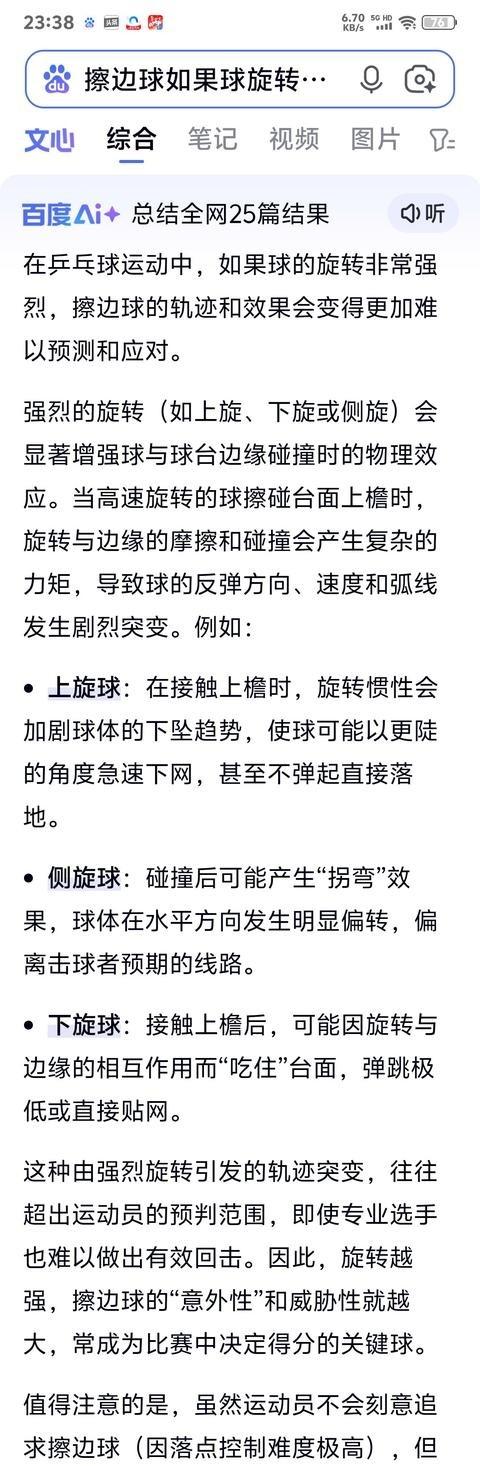 球是高速旋转转的,有的时候甚至会出现回旋球,这种不同的高速旋转的球,其擦边球的接触点后的方向是不一样的~所以为什么要看回放或者鹰眼挑战,就是要确定接触点,而不是根据接触之后球的轨迹判断是否擦边球~ 乒乓球比赛里擦边球这事儿一直挺烦人的。球速快得离谱,经常上百公里每小时,选手一拍下去,球带着各种旋转飞过去,接触球台边缘那一瞬间就零点零几秒,肉眼根本抓不住准点。国际乒联规则写得清楚,球只要碰到球台上表面,包括白线和上沿,就算有效,得分;要是只擦到侧面,那就是无效,失分。可实际操作起来,裁判站边上,视线角度有限,球又小又快,判起来容易出错。 关键问题是球的旋转。选手发球或拉球时加的上旋、下旋、侧旋甚至回旋都不一样,这些旋转让球在空气里走弧线,碰到边缘后弹的方向也跟着变。上旋球擦上沿,弹起来高高的弧度明显;下旋球可能低平甚至往下沉;侧旋或回旋球弹跳还带横向偏转,轨迹扭来扭去。有时候同一个接触点,因为旋转不同,赛后看起来反弹路径天差地别。过去裁判主要靠看反弹方向来猜:向上弹多半判有效,向下或偏得厉害就判无效。可这办法不靠谱,旋转一干扰,视觉上就乱套,同一颗球不同人看可能得出相反结论。比赛现场经常因为这种判罚吵起来,选手不服,观众也议论纷纷。 国际乒联从2019年开始试用TTR回放系统,就是大家俗称的鹰眼,专门解决这类争议。系统用多台高速摄像机围着球台拍,实时抓球的三维轨迹,精度到毫米级。争议一出,选手马上举手挑战,TTR就把接触瞬间放大慢放,三维重建画面直接标出球到底碰的是上表面还是侧面。绿色标记有效,红色标记无效,转角也分得清清楚楚。裁判看完回放直接终裁,不用再猜反弹轨迹推接触点。2025年多哈世乒赛全面用上这套,每人每场两次挑战机会,成功不扣次数,失败扣一次。擦边、擦网、发球高度、角度这些都包括在内。实际用下来,旋转造成的误判少多了,因为它盯的是接触那一刻的位置,不是之后的弹跳路径。 为什么非得看接触点呢?因为轨迹判断太主观。球带回旋时,擦上沿可能弹得歪七扭八,像没擦边一样;擦侧面带上旋时反而高弹,像有效。光看赛后球怎么飞,容易被旋转骗。TTR直接重建三维模型,算出球心和台面边缘的精确交点,误差控制在很小范围,避免了旋转干扰。以前没这技术,裁判压力大,判错就挨骂;现在有客观依据,比赛公平度高了不少。发球规则也严,抛球至少16厘米、角度不超过30度、不能遮挡,这些争议也靠TTR解决。王楚钦在多哈世乒赛就两次挑战成功,一次抛球角度24.67度合规,一次台内发球判错,都靠回放翻盘。 总的来说,乒乓球速度和旋转太极端,人眼极限摆在那儿。靠反弹轨迹猜擦边,本来就靠不住,不同旋转下表现差异大,判罚容易两极分化。TTR把焦点拉回接触点本身,用科技把主观变客观。国际大赛用上后,争议少了很多,选手更敢放开打,观众看球也踏实。技术不是万能,但至少让规则执行更准,比赛少点扯皮,多点实力说话。