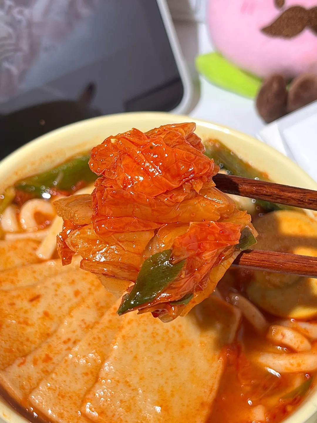 家人们!山姆这个乌冬面直接焊死我的速食清单😋 纯纯懒人福音,3分钟就能煮好 汤底是韩式泡菜自然发酵的酸香,是那种温和的辣,很开胃 ,不会太重口 鱼饼给得挺足,厚切的口感很弹,乌冬面也够劲道,能挂住汤汁 天冷或者懒得动的时候煮一碗,嗦一口面喝一口热汤,热乎乎地超满足! 逛山姆可以试试,方便又好吃