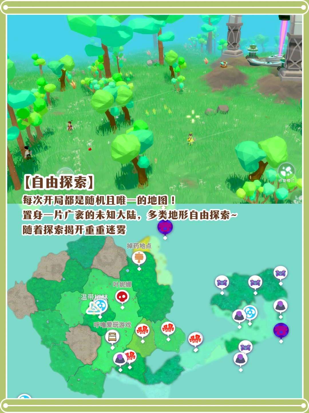 《无径之林》上线啦‼️ 1️⃣玩家将置身一片广袤的未知大陆,每次开局都是随机且唯一的地图! 2️⃣沉浸式模拟野外生存条件,恶劣的天气、未知的野兽和敌人,玩家需要进食、维持水分、体温、精神状态等指标。 3️⃣收集资源建造住所;选种引渠耕种丰收;自由建造家园,还可以一键搬家。 4️⃣打造装备,直面敌人~ 5️⃣招募伙伴,共同生活。