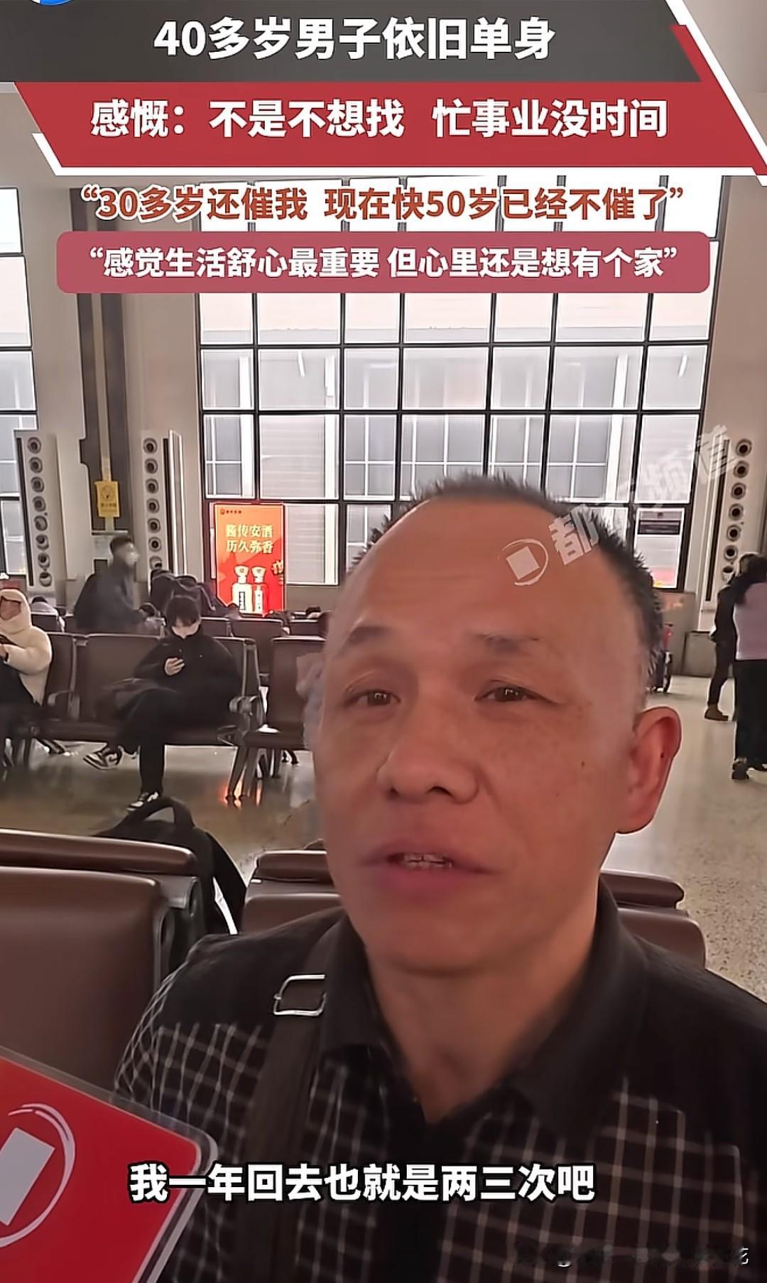 图中这名男子四十多岁了,依然单身,理由是太忙,忙着搞事业没有工夫谈恋爱,以前父母天天催,现在不催了,虽然渴望成家,但还是觉得舒心自在最重要,高质量的单身远远高于低质量的婚姻。 有人说他很通透,热爱生活。也有人说他很失败,没有对象,没有结婚,没有成家立业,没有孩子,不仅给父母丢脸,也每天浑浑噩噩的不知道在做什么,别人外出打工挣钱无非就是养家糊口,把孩子照顾好,让老人有个安享的晚年,而他依然我行我素,永远想着自己。 在很多人眼里,无论什么理由,男人不结婚就是失败的,是不愿担责的,是没钱的,是自私自利的。但是在大多数男人眼里,他们是不愿乱结的,也不愿让孩子继承自己的苦难,更不愿让生活一地鸡毛,他们只是想要平平淡淡的生活,但这似乎成了一种奢望,因为要维持这种平淡需要大量的时间和精力,以及需要更多的钱。 所以我们再看现在的年轻人,不是他们不愿结婚,而是顾虑的太多了。无论是婚姻,还是孩子,如果没有老人的帮衬,没有社会的托举,就像一个大坑,跳进去了就要艰难的活着,很难再爬出来。