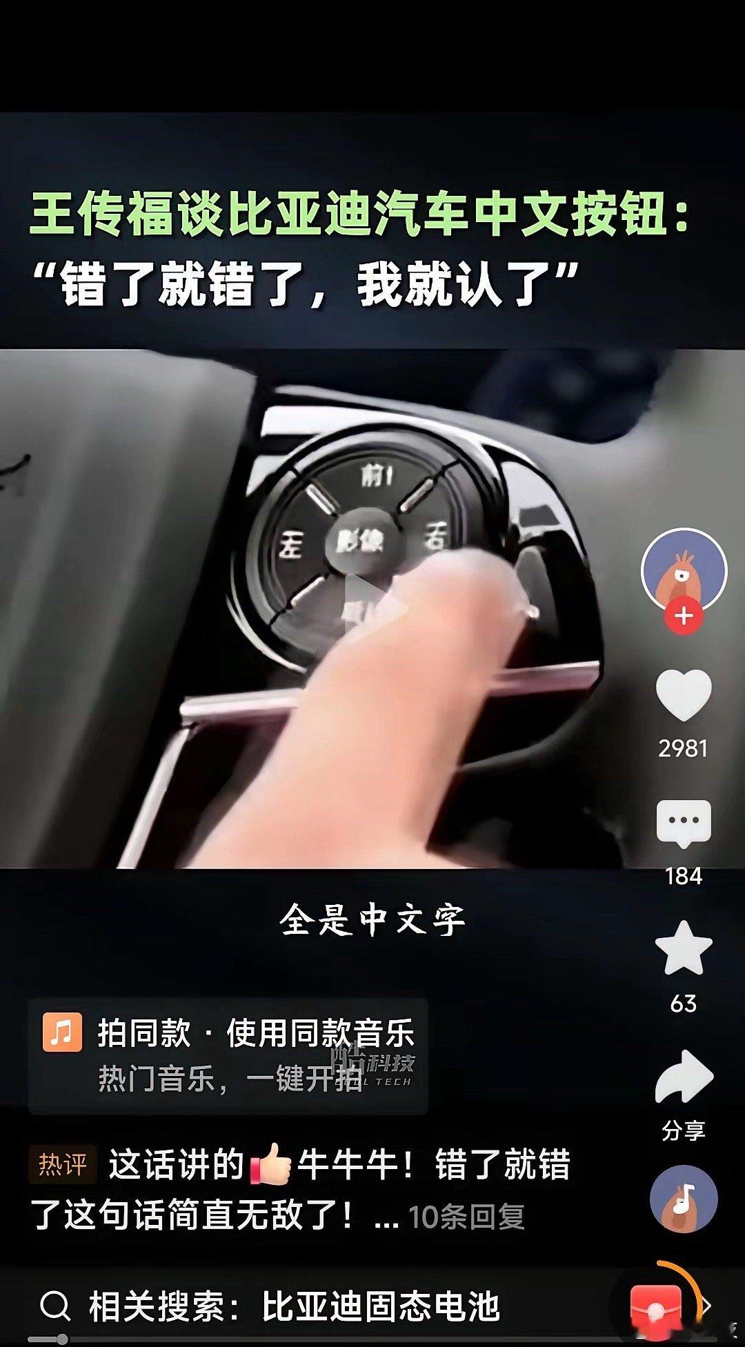 没想到比亚迪的按钮全是中文的,这个简直是太牛了。而且国外也都是中文的,连语音也都是中文的,英文要加钱。