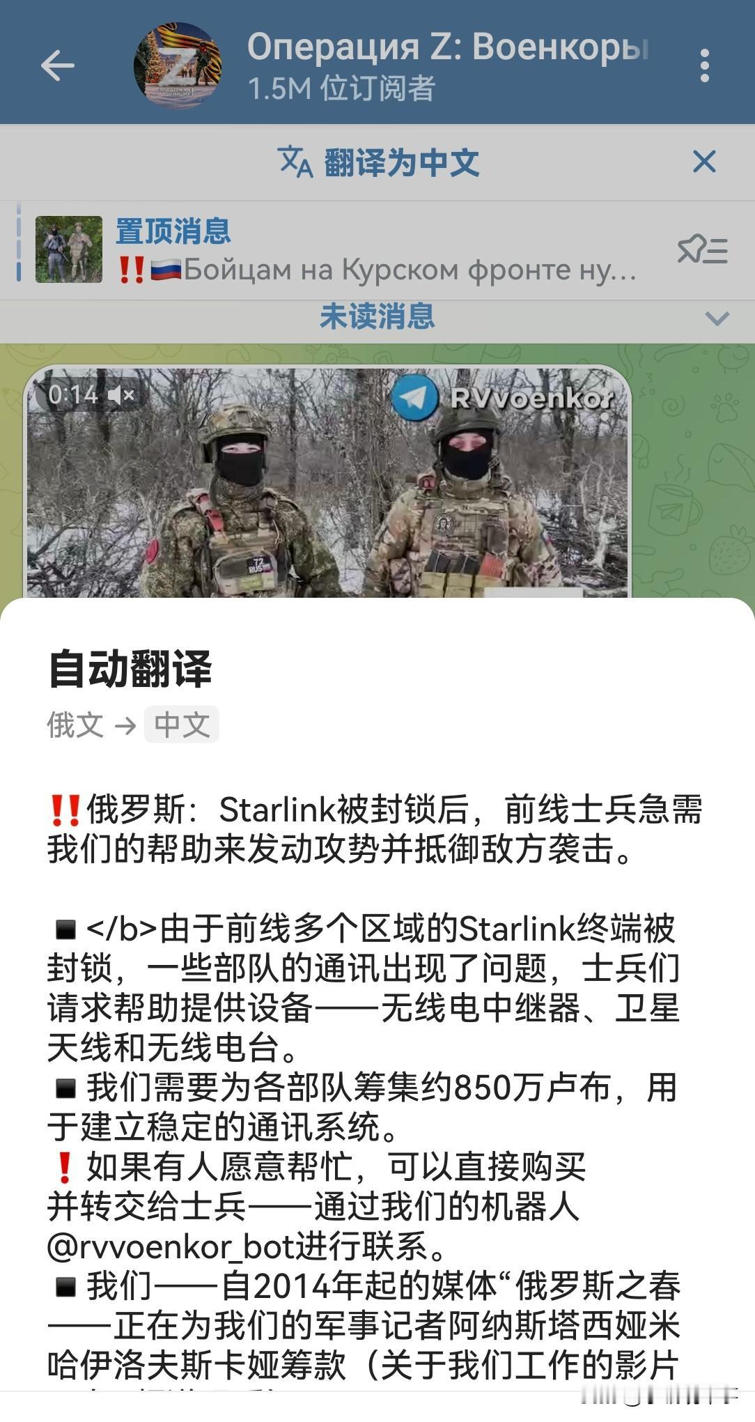 俄罗斯士兵证实,由于乌克兰前线多个区域的星链终端被封锁,一些部队的通讯出现了问题。他们急需得到通讯设备,来帮助俄军发动攻势并抵御乌军袭击。
