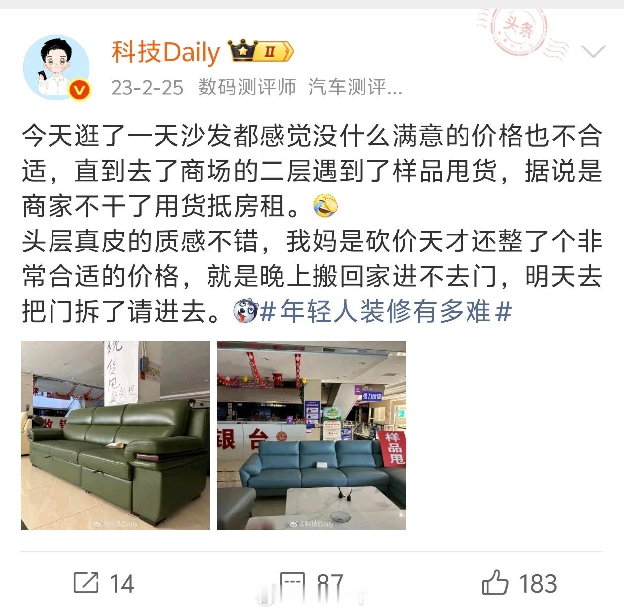 我们家沙发本身是家具市场淘回来的,之前商场说商家倒闭,没钱付房租拿沙发抵的所以他