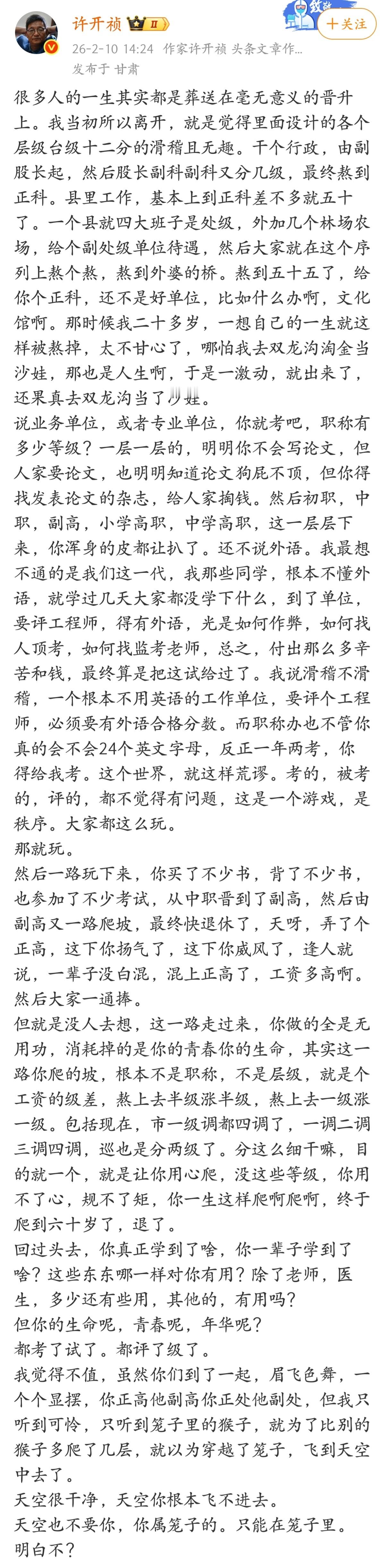 作家许开祯:很多人的一生其实都是葬送在毫无意义的晋升上。