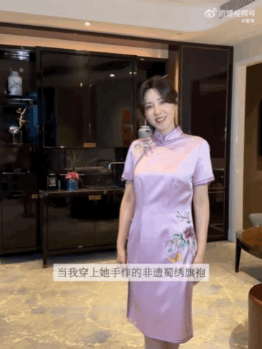 曾黎 刻在骨子里的东方韵味曾黎穿淡紫色蜀绣旗袍也太绝了吧!!! 拜访非遗传承人,一身手作旗袍上身,眉目如画、温婉大气,东方美人的韵味真的刻在骨子里,一颦一笑都是中式雅致!
