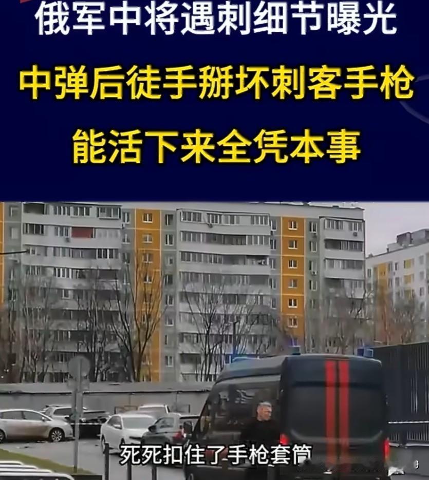 俄罗斯中将遇刺细节曝光。2026年2月6日清晨,莫斯科沃洛科拉姆斯克公路旁的一栋居民楼内,一场针对俄军格鲁乌第一副局长弗拉基米尔·阿列克谢耶夫中将的“斩首行动”悄然展开。在将军楼栋的电梯间内,伪装成维修工的刺客柳博米尔·科尔巴在不足两米的距离内,突然拔出安装了消音器的马卡洛夫手枪,近距离扣动了扳机。当第一颗子弹击穿阿列克谢耶夫中将的腹部,剧痛袭来的瞬间,这位64岁的老将并没有像普通人那样因恐惧而身体僵直或后退,而是凭借着数十年军旅生涯刻在骨子里的本能,做出了违背人类求生本能的反应——迎着枪口冲了上去。 在这生死一线的档口,阿列克谢耶夫的左手几乎是擦着枪口喷出的火光,死死扣住了手枪的套筒。这一精准且凶狠的动作,不仅强行偏转了枪口,使得后面的子弹偏离了身体要害部位(只是击中了腿部),更关键的是,他用力硬生生地卡住了半自动手枪的机械循环。马卡洛夫手枪在击发后需要套筒后坐才能完成抛壳和上膛。将军在中弹的剧痛中,竟以惊人的意志力和指力将套筒掰住,导致枪支因无法完成机械动作而发生卡壳。 面对死死纠缠、气势逼人的将军,刺客的手枪始终无法射出子弹,只能惊慌弃枪逃离。阿列克谢耶夫中将凭借过硬的身体素质与心理素质,将命运攥在了自己手中。 (本文根据有关视频改编)