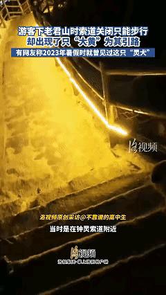 万物有灵!河南,一男子在老君山游玩,下山时,索道已经关闭,他只能摸黑徒步往山下走,可步道岔路多,他越走越慌,正站在岔路口发愁时,一只大黄狗突然从路边窜出来,冲到他面前,要给他带路。 当时天已经完全黑了,山上视线很差,男子一个人走在台阶上,根本分不清哪条路能下山。岔路一多,人就容易紧张,他站在原地也不知道该往哪走,心里非常着急。 就在他犹豫徘徊的时候,这只大黄狗从旁边跑了出来,直接挡在他前面,明显是要带着他往前走。整个动作很自然,不像是有人训练过,更像是常年在山上活动的习惯反应。 男子一开始还有点意外,但看狗狗一直往前走,还时不时回头看他,也就跟着走了起来。狗狗对山路非常熟悉,每到岔路口都直接选对方向,没有一点迟疑。 一人一狗就这样沿着步道往下走,男子不用再判断路线,只要跟着狗狗的脚步就行。原本让人害怕的夜路,因为有狗狗带路,变得顺利了很多。 这只大黄狗看起来就是山上常见的土狗,身体健壮,走路稳健,全程都保持在男子前方不远的位置。它不吵不闹,也不主动靠近,只是安安静静地带路。 男子全程用手机记录下了这段路程,从视频里能看出来,山路确实不好走,光线也暗。如果没有这只狗,他很可能要在山上多绕很久,甚至会迷路。 整个过程没有任何表演痕迹,也没有多余的互动,就是很平常的一段带路。狗狗没有向男子要吃的,也没有刻意讨好,完成带路后就自顾自地离开了。 这件事之所以能让大家关注,就是因为足够真实。没有剧本,没有摆拍,就是一只狗在山上,主动帮助了一个迷路的游客。 很多人看完都觉得暖心,不是因为有多感人,而是这种实实在在的帮助,最能让人踏实。一只普通的大黄狗,用最简单直接的方式,帮人解决了真实的麻烦。 各位读者你们怎么看?欢迎在评论区讨论。