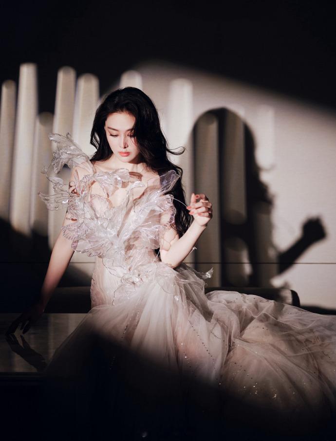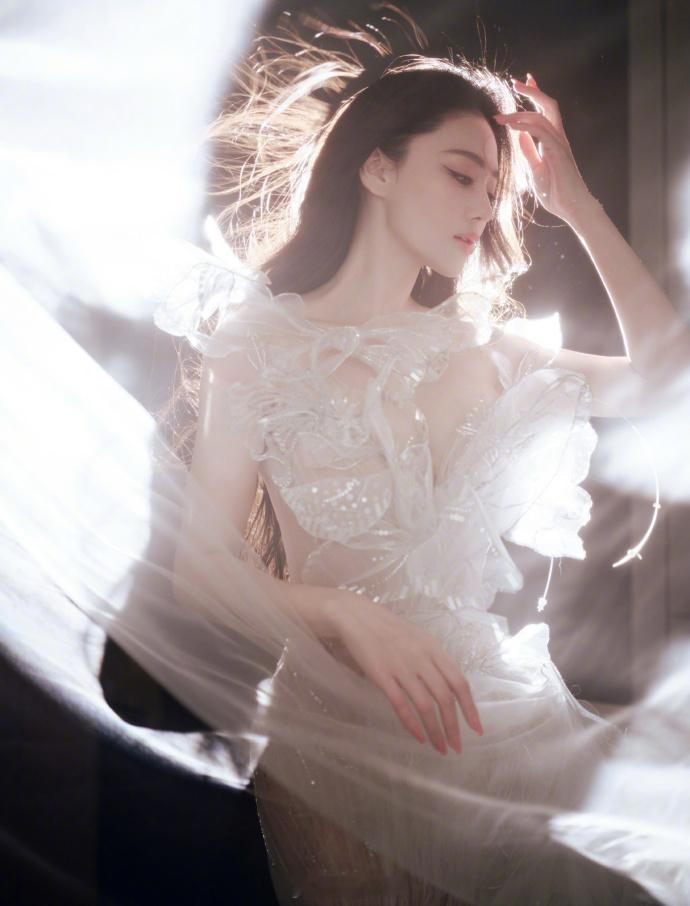 蝴蝶纱裙,发丝轻扬清冷妩媚——张馨予。每日明星美图分享