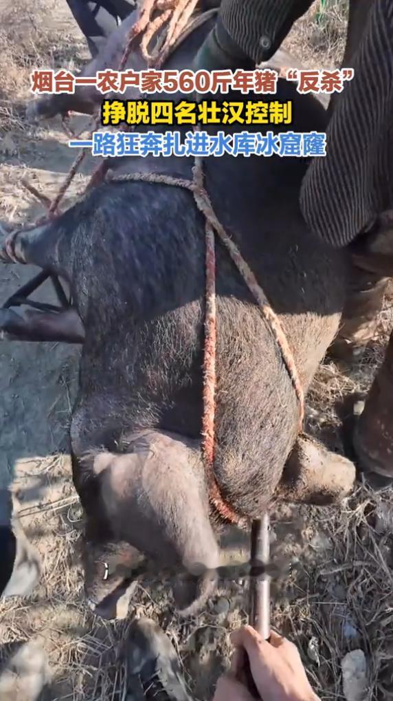 万万没想到!近日山东烟台,一男子家杀年猪,不料,因猪太重,4个人按不住,男子就想着拿东西先把猪给敲晕在杀,不曾想猪没被敲晕还因此受惊逃跑了,由于男子家离水库比较近,猪不知道往哪里跑就一头扎进了水库的冰窟窿里。 2026年2月9日,山东烟台的一个小村庄,腊月的寒风像刀子一样刮在脸上,却刮不散一户人家杀年猪的热闹劲儿。 这户人家的男主人姓李,今年特意养了一头"重量级选手"——足足560斤的大肥猪。在农村,杀年猪是腊月里的头等大事,寓意着丰收和团圆,也是邻里之间互相帮忙的好时机。 李大哥早早地就请了村里三个壮汉来帮忙。加上自己,四个老爷们儿,按说对付一头猪绰绰有余。 可真到动手的时候,李大哥才发现,这头猪简直是个"猪中吕布"。 560斤的体重,带来的是惊人的爆发力。四个壮汉使出浑身解数,脸憋得通红,额头上青筋暴起,愣是按不住这头"猛猪"。 猪的叫声震耳欲聋,整个院子都乱成了一锅粥。它左冲右撞,四条粗壮的腿像装了弹簧,一次次挣脱四人的束缚。 眼看太阳渐渐升高,围观的村民越来越多,李大哥有点急了。他担心再耗下去,猪没杀成,自己倒先累垮了。 情急之下,李大哥抄起墙角的一把榔头,心里琢磨着:硬按不行,那就来软的,先把它敲晕,看它还怎么折腾。 他瞄准猪脑袋,"咚"的一声敲了下去。 这一敲,可真是捅了马蜂窝。 猪不仅没晕,反而像是被点燃的炮仗,瞬间爆发出更强的求生欲。它发出一声震耳欲聋的尖叫,猛地一甩头,挣脱了四人的手,撒腿就往院外跑。 那速度,简直让人不敢相信这是一头560斤的肥猪。四个壮汉在后面追得气喘吁吁,却只能眼睁睁看着它越跑越远。 更要命的是,李大哥家离村口的水库只有几百米远。受惊的猪哪里还顾得上方向,慌不择路,一头就朝着水库冲了过去。 李大哥急得直跺脚。这头猪可是他养了一年的心血,眼看就要到手的肉,就这么没了? 他赶紧让人找来绳子和竹竿,想把猪捞上来。可冰面太滑,洞口又小,加上水又冷又深,折腾了半天,连猪毛都没碰到一根。 村民们也都围了过来,七嘴八舌地出主意。有人说要找专业打捞队,有人说要等冰面冻实了再想办法,还有人开玩笑说:"这猪是不想死,自己跳河'自杀'了。" 时间一分一秒过去,太阳升到了头顶。就在大家快要绝望的时候,有人发现冰窟窿里有了动静。 原来,这头猪虽然掉进了冰水里,却没有立刻淹死。它在水里挣扎着,偶尔还会浮出水面喘口气。 李大哥赶紧让人找来一张大网,几个人小心翼翼地趴在冰面上,慢慢把网靠近冰窟窿。 终于,在中午时分,他们成功地把这头"命大"的猪捞了上来。 只是此时的猪,早已没了之前的威风。它浑身湿透,冻得瑟瑟发抖,趴在地上一动不动,连叫的力气都没有了。 看着这头死里逃生的猪,李大哥又气又笑。气的是忙活了一上午,差点鸡飞蛋打;笑的是这猪的求生欲,真是让人佩服。 最后,这头猪还是没能逃过被宰杀的命运。不过,经历了这么一场"生死逃亡",它的肉在村里也成了"名猪",家家户户都想尝尝这头"越狱猪"的味道。 这场杀年猪的闹剧,很快就在网上传开了。网友们纷纷留言,有的说:"二师兄这是最后的倔强啊,宁可跳冰窟也不受辱。"还有的说:"这猪要是会说话,肯定得说:想杀我?没那么容易!" 不过,在笑过之后,我们也该想想这件事背后的安全问题。 在农村,杀年猪是传统习俗,但其中隐藏的安全隐患可不少。每年都有因杀年猪发生意外的新闻,有的是被猪撞伤,有的是工具伤人,还有的是像李大哥这样,发生各种意想不到的状况。 烟台市农业农村局的专家就提醒大家:杀年猪时,一定要做好安全防护。首先,要确保有足够的人手,像560斤的大猪,至少需要6-8个壮汉才能安全控制。 其次,千万不要用榔头、棍子等工具敲击猪的头部,这样不仅容易让猪受惊,还可能导致猪头部受伤,影响肉质,甚至可能反弹伤人。 正确的做法是,使用专业的杀猪工具,或者请有经验的屠夫来操作。同时,要选择开阔、平坦的场地,远离水源、悬崖等危险区域。 另外,冬季冰面行走也是一大安全隐患。像李大哥家附近的水库,看似坚固的冰面,其实隐藏着巨大的危险。 烟台市应急管理局的数据显示,每年冬季都有因冰面破裂导致的落水事故。专家建议,冬季尽量不要在冰面上行走,尤其是水库、河流等自然水域的冰面,厚度不均匀,很容易发生危险。 如果不慎掉进冰窟窿,要保持冷静,不要惊慌挣扎,这样会加速体力消耗。应该尽量让身体漂浮在水面,大声呼救,等待救援。同时,要注意保暖,避免因体温过低导致昏迷。 这场"猪跳冰窟"的闹剧,虽然最后有惊无险,却给我们敲响了警钟。传统习俗固然重要,但安全永远是第一位的。 在享受杀年猪带来的欢乐和美食时,我们也要时刻注意安全,避免意外发生。毕竟,开开心心过大年,平平安安才是福。