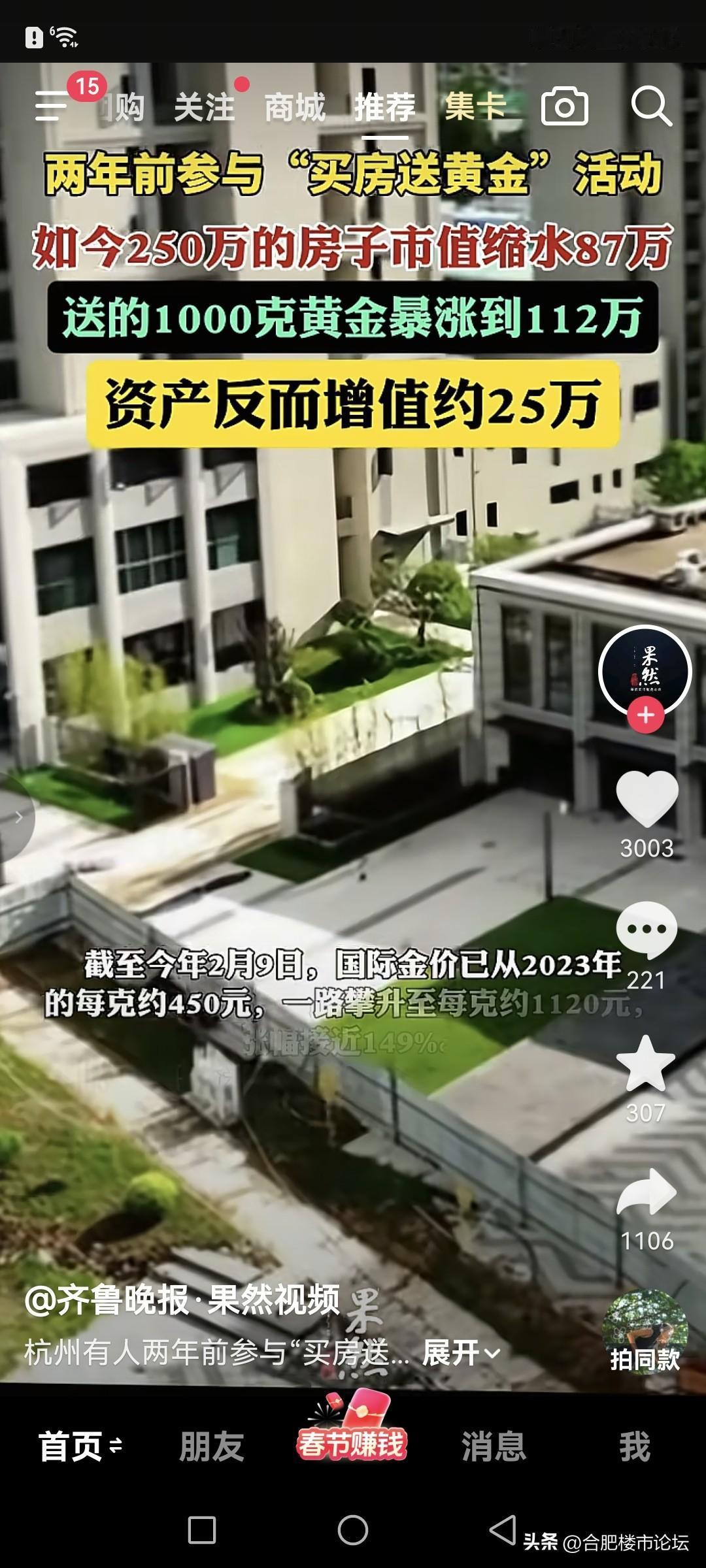 买房子赠送黄金的。房子缩水87万,但是黄金增值一百多万。这样看也是赚了不少。