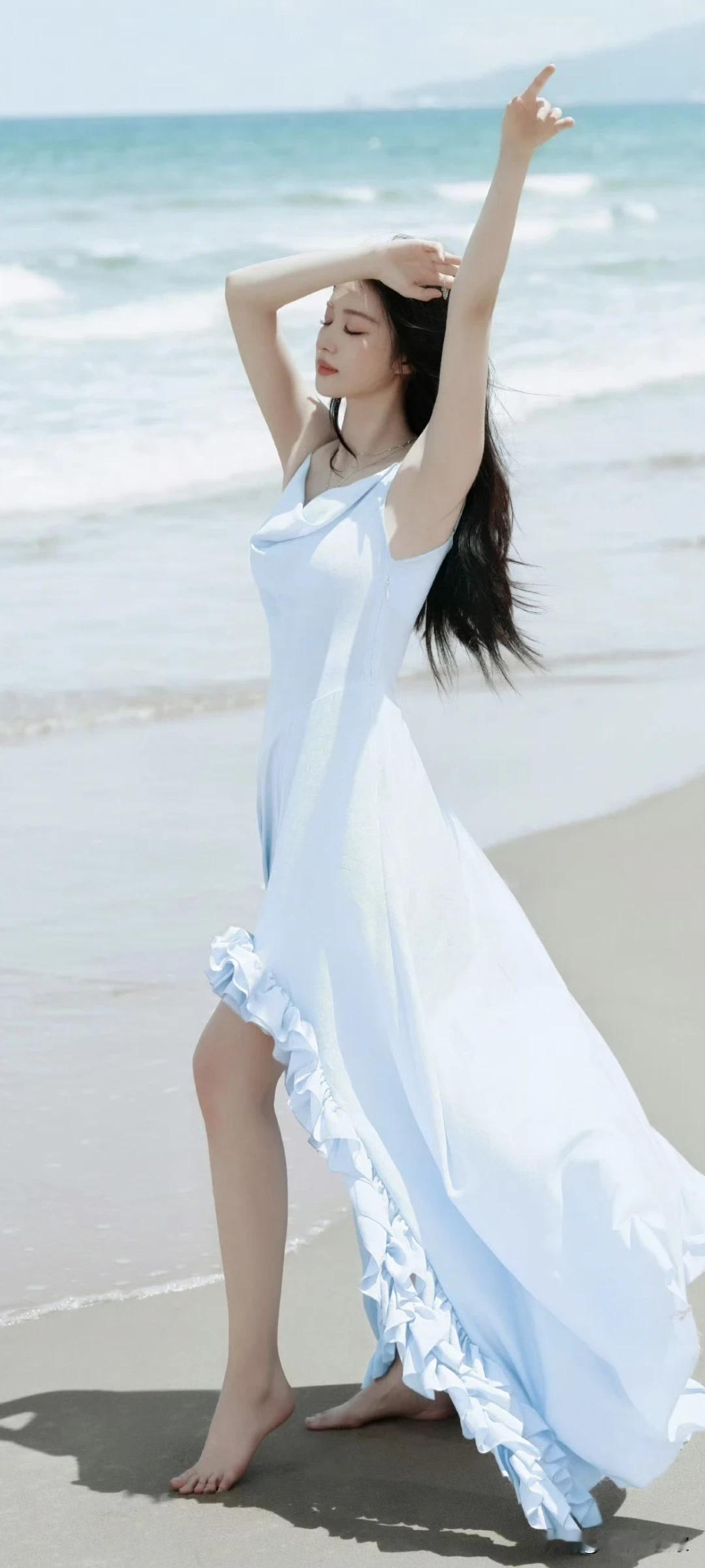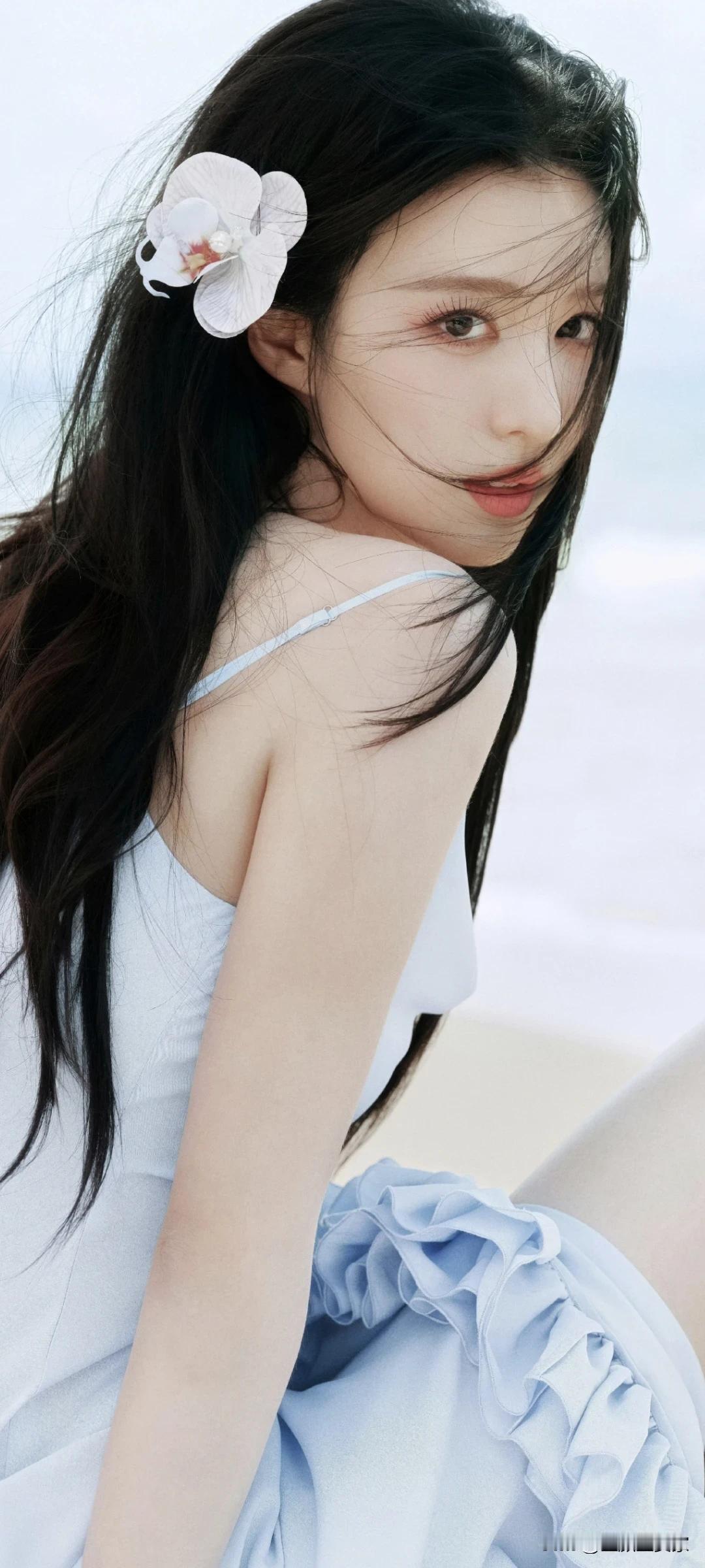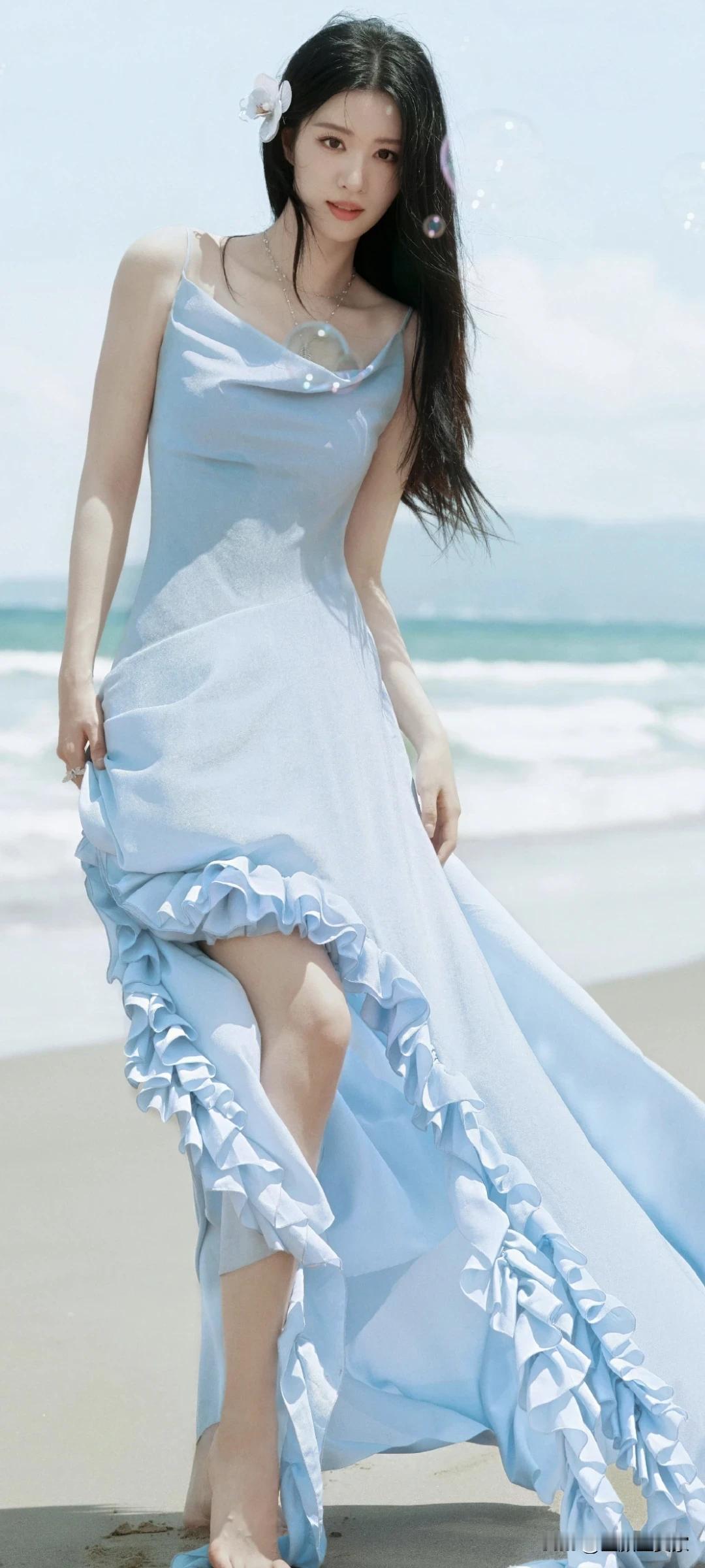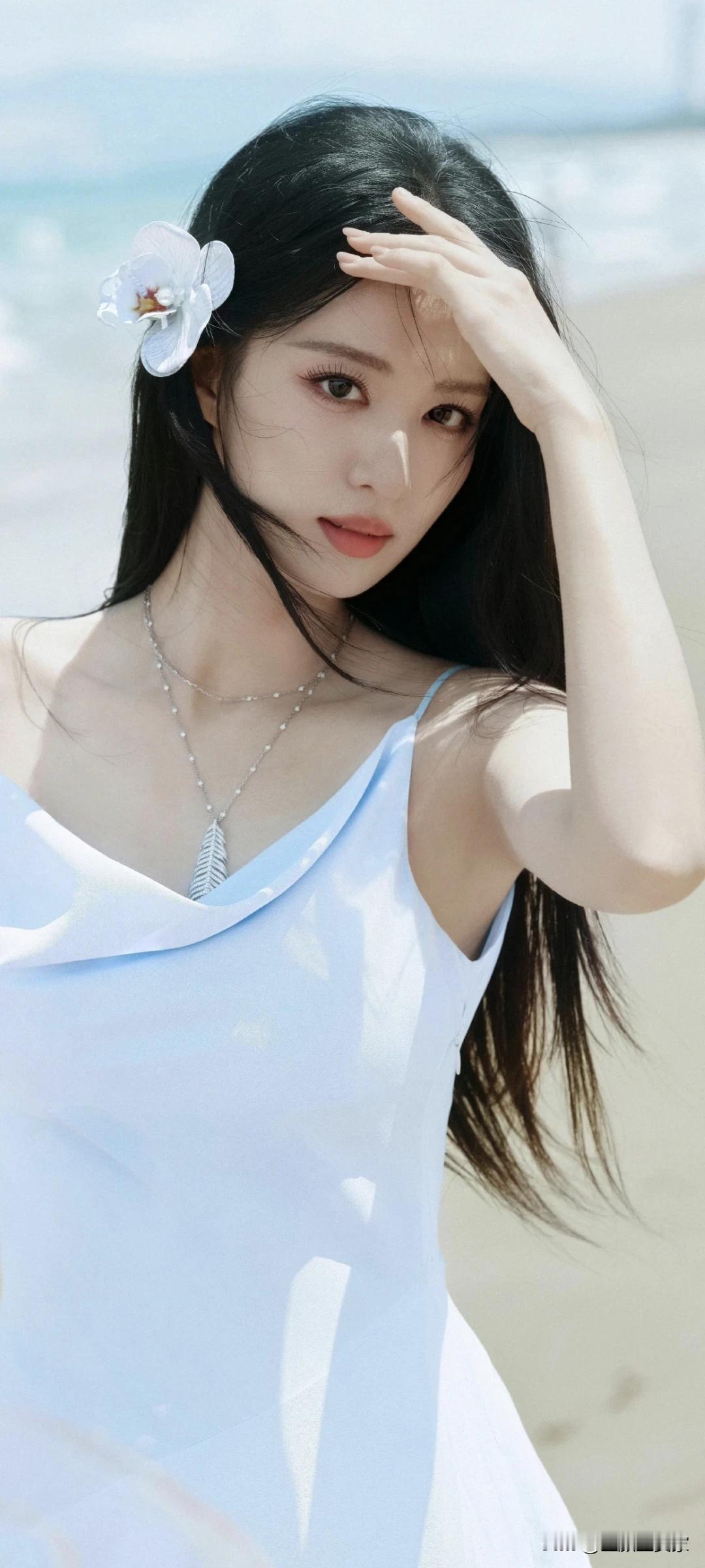 王楚然写真壁纸~清冷系美人的浅蓝裙,把海风都变温柔了!