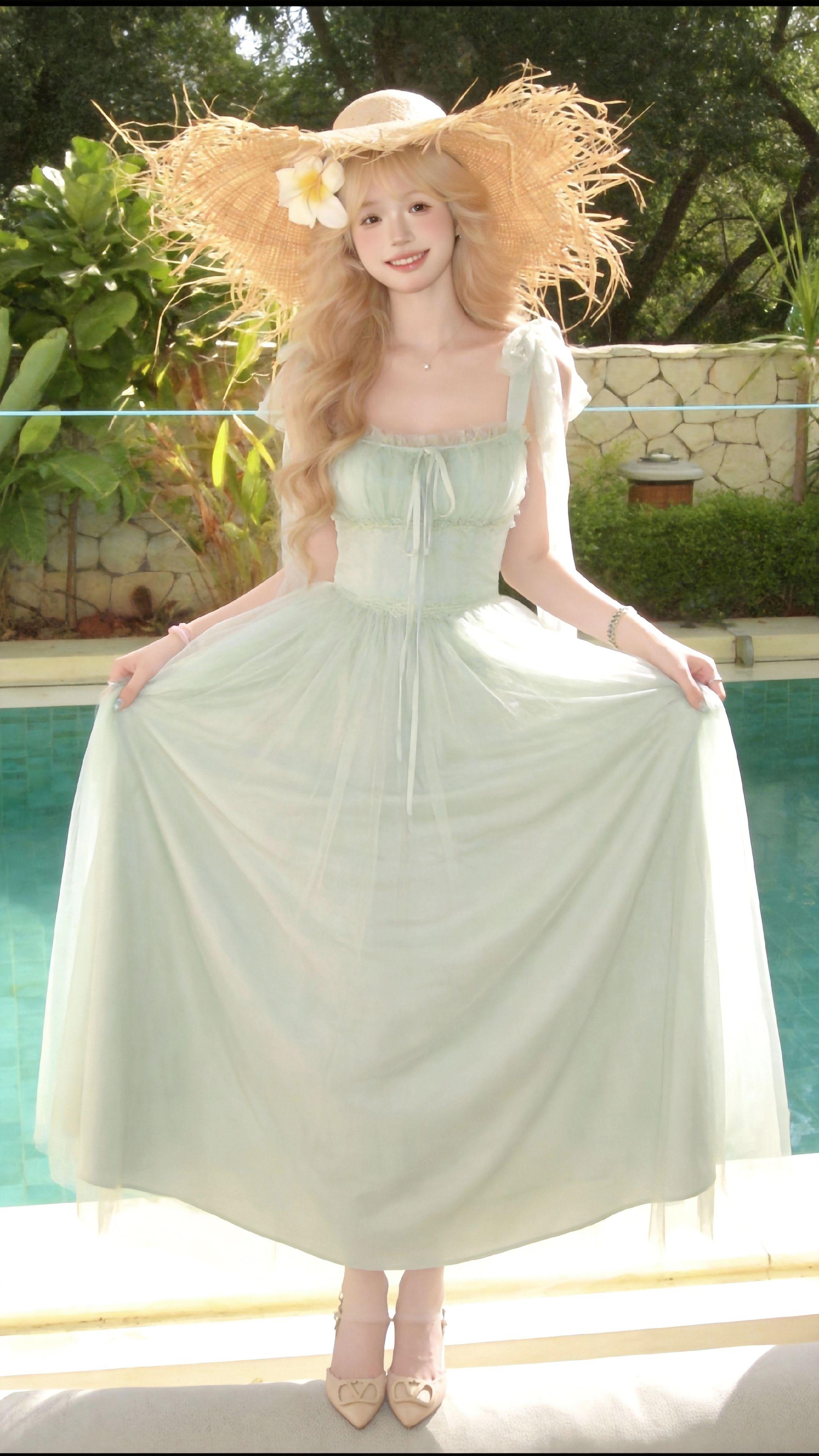 甜美小白裙一整套不到一张。
