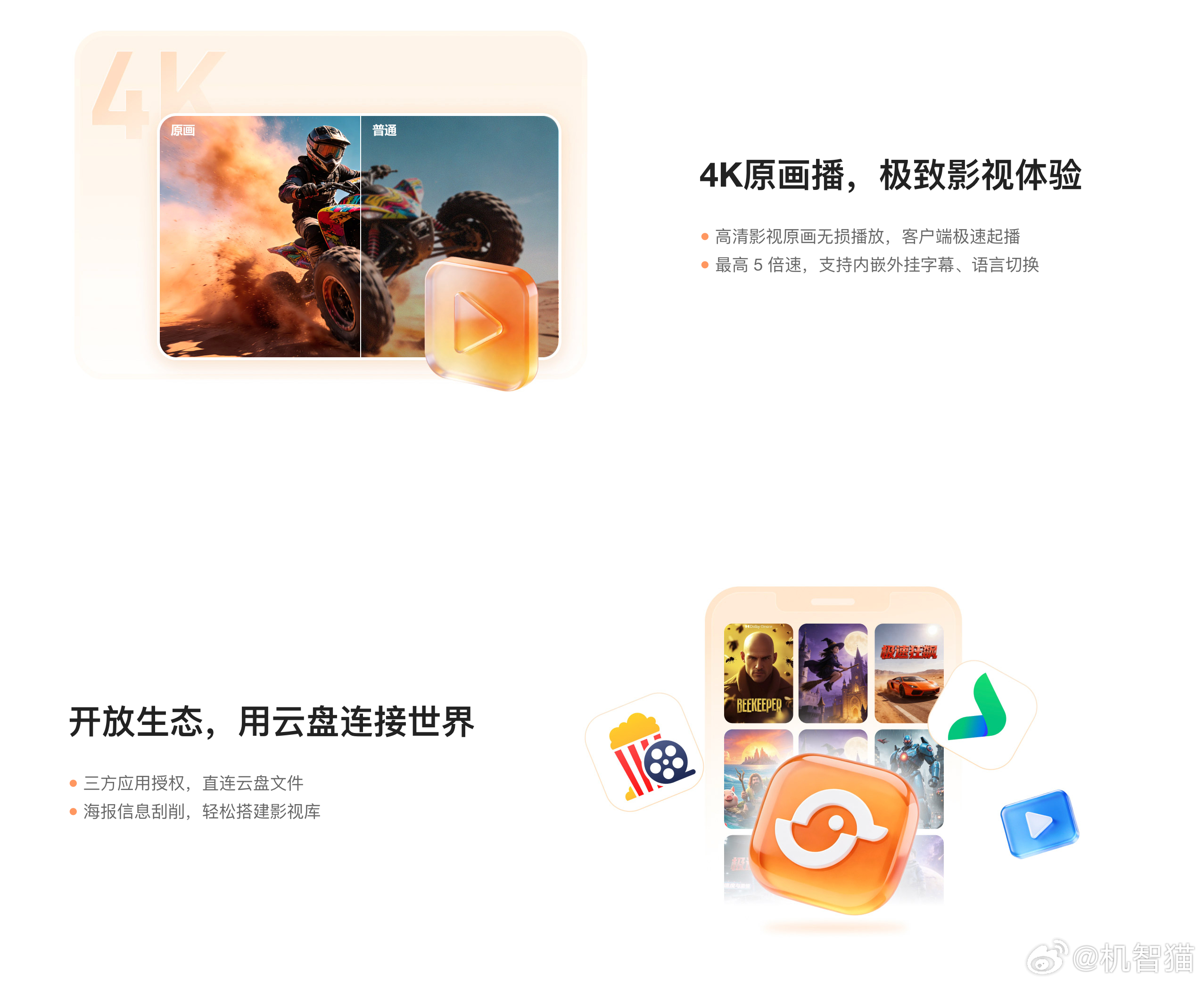 不同之处在于光鸭云盘更侧重宣传影视资源的支持,比如支持磁力链、ed2k、迅雷链、http、https 批量云添加支持原画无损播放,客户端极速起播三方应用授权,直连云盘文件