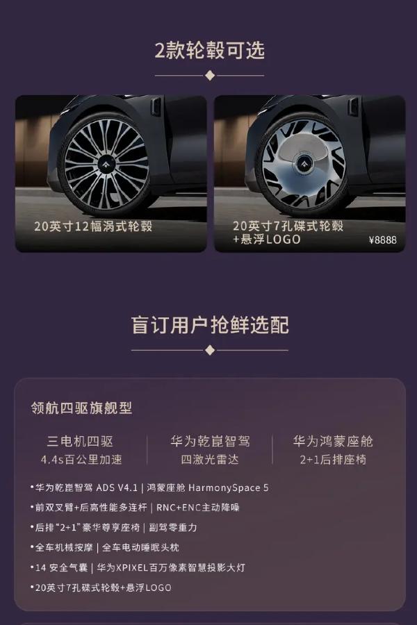 昊铂A800盲订选配开始,提供四款车型,六款外观颜色、三款内饰颜色,两种轮毂样式。帮大家出出主意,仅供参考,年轻的话,咱就云幕紫外观,反正省5000元,羊毛该薅薅不拘着,内饰选多佛白崖,里外一搭绝绝子,轮毂就免费的就行,大饼圈真的不搭;您要是没那么大个性化需求,那就白外黑外,加上黑色内饰,悬浮LOGO的轮毂给勾上,保值率也在线。配置的话,看个人需求吧,划掉最低配,其他都可以~问题来了,这款车您觉得会定什么价格,评论区大家猜猜。【来自懂车帝车友圈】