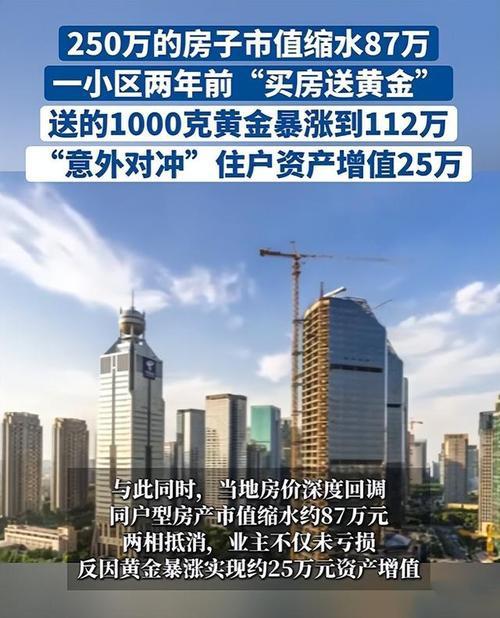 买房亏87万,送的黄金狂赚112万!网友:开发商才是真财神 杭州一业主堪称全网最幸运购房者,当年买房遭遇房价大跌,房子直接缩水87万,本以为血本无归,没想到开发商送的黄金,成了最大惊喜。 203年买房时,楼盘赠送1000克黄金,如今金价暴涨,黄金市值飙升至112万,不仅覆盖了房价亏损,还实现反向盈利。 一边是房产缩水,一边是黄金暴涨,意外形成完美对冲,业主躺赢翻盘。 网友纷纷调侃:买房是副业,囤金才是主业,开发商这波是变相送财。 这波神操作,彻底颠覆买房逻辑,谁能想到,救了钱包的不是房子,是当年送的黄金!