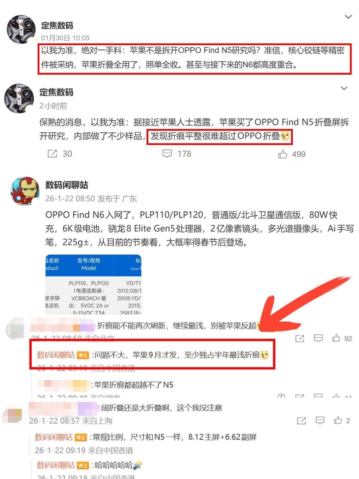 形势很严峻!2026年再不发力折痕就晚了? 卷不动的厂商很可能要掉队了!尤其是折叠屏这一细分市场,苹果入局后怕不是要卷飞了! - iPhone Fold大概率会在9月份发布,苹果的重点放在内屏的折痕优化上,试图解决折痕这一困扰折叠屏用户多年的难题。 - 不过苹果也是很精啊,等国产品牌把技术卷成熟了再来进场,据说苹果曾专门买了折痕控制方面的标杆OPPO Find N5回去拆机研究,iPhone Fold要用的屏幕、铰链技术也跟OPPO高度重合,基本就是照搬了OPPO的技术供应链。但是有说法是Find N6这次是用上了一大批新的黑科技,液态金属材质铰链、黑绷带屏幕、自修复玻璃等等,从这些技术的名称来看就不简单,不仅能做到拉平屏幕和最浅折痕,而且折痕还能自修复,用久了折痕还不会加深? - OPPO产品经理周意保发的最新微博就宣称,OPPO Find N6年后登场,估计应该会在3月份发布,而苹果要到9月份。因此从两家新品的发布时间上来看,加上两家对技术的应用进度,苹果折叠屏可能会是还没发布即落后的节奏啊!要换折叠屏的选谁就不用多说了吧? - 不管怎么说,2026年折叠屏市场肯定是会有大变化,就看其它家还有哪些重磅新品吧!大家更期待谁? -