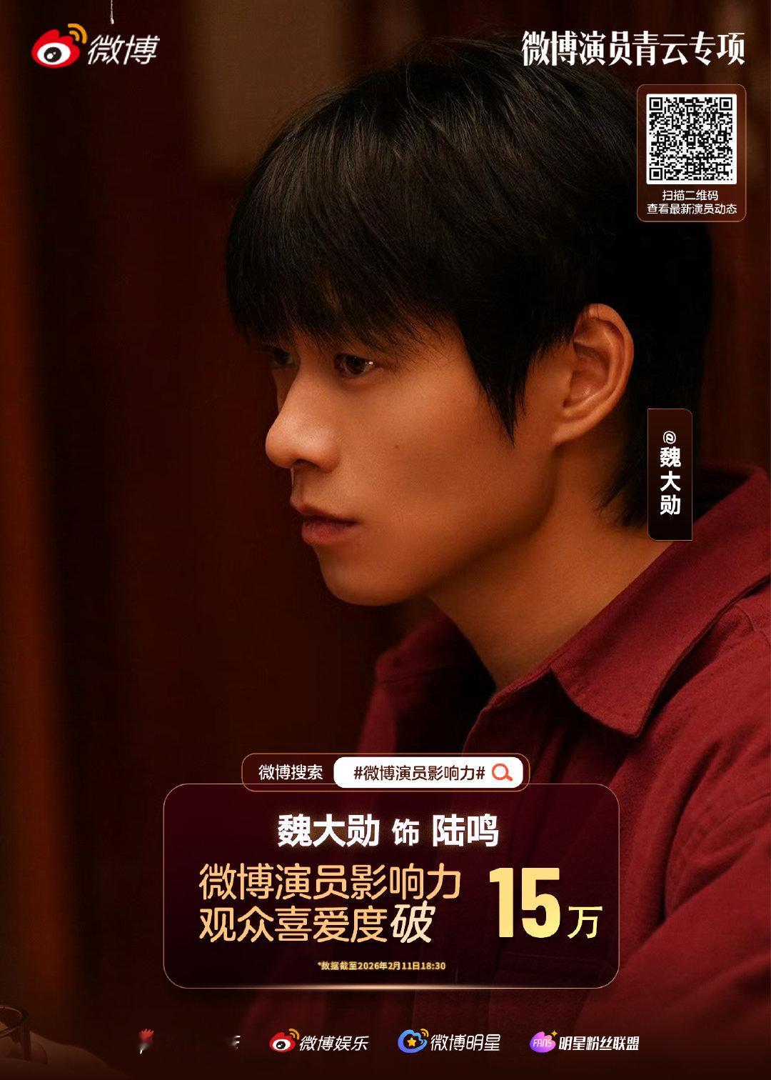 微博演员影响力观众喜爱度强势突破十五万!恭喜魏大勋陆鸣观众喜爱度破15万🌟