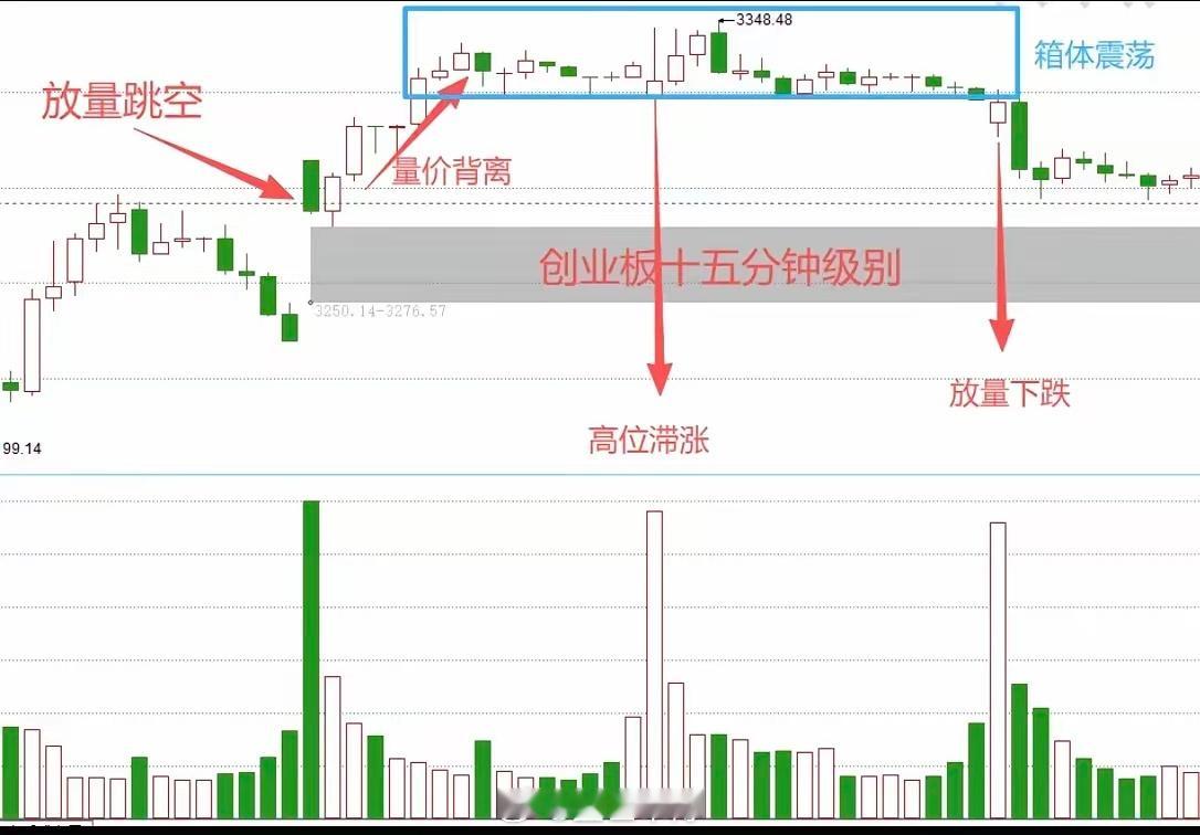 量能、K线、趋势,看懂这三点,您在股市就悟道了!这是近三日中小板十五分钟级别走势图,这个方法可以应对指数和个股操作。量能:“量在价先”这是主力行为,也可以理解为有量的位置,是最明显的大资金行为,当股价发生扭转,无论是筑底、涨势初期和加速拉升段,都要有合理的放量作为判断依据。但是,在高位放量不能出现滞涨或背离,这是区间高点特征。价格:“量价齐升”这是资金力度,最标志性的K线包括涨停板,跳空大阳和连阳,在股价弱转强和突破阶段,阳线的力度直接决定了后市的涨幅,在低位选股阶段,可以通过K线力度做分析。趋势:“操作根本”这是操作策略,只有在上升趋势中,股价才具备连续攻击条件,横盘震荡和下跌趋势远而避之,永远具有确定性,可以在黎明之前做潜伏。重点:股价扭转需要量价齐升,结合跳空突破可以判断为有效突破。在拉升途中股价涨幅要大于低位,同时量能也要有所放大,不然,股价就会滞涨。在震荡区间可以缩量,一旦出现滞涨放量阴,预示短期内指数强转弱。当早盘出现放量阴破位➕连阴破位,短期高点出现。