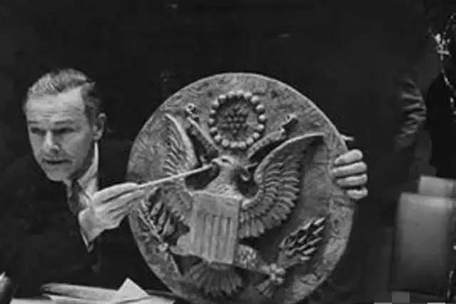 苏联发明的窃听器到底有多牛?不需要任何电子元件就可以在美国大使馆服役8年之久,在这期间即使老美知道自己被监听了,但是仍然找不到任何的蛛丝马迹。 这个窃听器是苏联情报机构在上世纪40年代搞出来的经典被动监听设备。发明人列夫·特雷门,1896年生于圣彼得堡,早年搞电子乐器特雷门琴出名,那玩意儿不用碰就能用手在空中控制声音,靠的是人体电容变化。20年代他在美国混得风生水起,RCA公司帮他量产乐器,还在卡内基音乐厅开过演出。30年代后期因为经济和个人原因回苏联,很快被抓进去,在古拉格的特殊实验室干活。那时候苏联把一批有技术的犯人集中起来搞科研,特雷门就在里面被迫转行研究监听技术。 他利用谐振腔原理设计了这款装置,核心是个金属圆柱腔体,里面有一层镀银薄膜和一根短天线,完全没有电池、晶体管、电线这些电子元件。工作方式是外部用微波照射它,室内声音通过小孔让薄膜振动,改变腔体的谐振频率,反射回去的微波就带上了调制信号。接收端解调就能还原对话。整个过程被动,平时不发射信号,常规反侦察设备扫过去根本没反应。这东西1945年被做成美国国徽的木雕样子,送给了美国驻莫斯科大使哈里曼。 礼物是苏联少年先锋队送的,8月4日那天在史帕索馆交给大使。木雕用多种木材拼成,雕工精细,老鹰、盾牌、星星条纹都齐全。大使馆保安用当时能用的工具检查过,没发现异常,就挂在了大使办公室书房墙上,正对着办公桌。之后七年多时间,大使换了四任,办公室装修好几次,墙纸换了,家具动了,国徽位置没变,一直挂在那儿。苏联那边在300米范围内找地方停车或者固定位置,用发射器间歇打微波脉冲,频率大概在800到1800兆赫兹之间。室内随便聊什么,从政策讨论到电话内容,都被完整收走。装置不需要维护,寿命长到离谱。 美国人其实早就怀疑大使馆被监听。1951年左右,有英国监听员在截获苏联空军通信时偶然听到一段英文,是大使馆内部的谈话内容。这下直接炸了锅,美国国务院和中情局开始怀疑自家地盘出问题。1952年他们派技术小组进驻史帕索馆,搞了一次地毯式搜查。从地下室到阁楼,地板撬开,天花板拆掉,家具拆解,墙体钻孔,用X光扫,用金属探测器测,忙活了好几个月,一开始啥都没找到。后来改用排除法,把馆里所有东西一件件过筛。最终锁定那枚挂了七年的木雕国徽。技术员取下来,撬开背板,里面露出金属圆柱和薄膜,天线短小精悍,没有任何电源痕迹。分析后确认这就是窃听源头,取名“The Thing”。 装置被拆解研究,美国情报界后来承认这玩意儿设计水平高得吓人。被动工作、无源、难以探测,这些特点在当时的反窃听技术面前几乎无解。苏联用它监听了美国驻莫斯科大使馆从1945年到1952年的大量机密谈话,内容涉及对苏政策、情报评估、外交谈判细节。直到暴露前,美国人完全没抓到把柄。 1960年5月1日,苏联击落美国U-2侦察机,赫鲁晓夫在巴黎峰会前公开指责美国搞间谍活动。美国反击,在5月23日的联合国安理会紧急会议上,代表亨利·卡伯特·洛奇直接把这枚国徽和拆出来的内部组件拿出来展示。他把腔体、天线、薄膜一一指给各国代表看,说这是苏联对美国外交使馆的长期窃听证据,用来平衡苏联对U-2的指控。现场照片和实物展示让这件事成了冷战情报史上的标志性事件。 The Thing本身成了监听史上最牛的无源装置之一,服役时间长、隐蔽性强、技术简单却极难发现,到现在提起冷战窃听案例,还经常被拿出来说事儿。苏联情报部门那时候确实靠这类低成本高效果的玩意儿占了不少便宜,美国吃亏吃得挺憋屈。