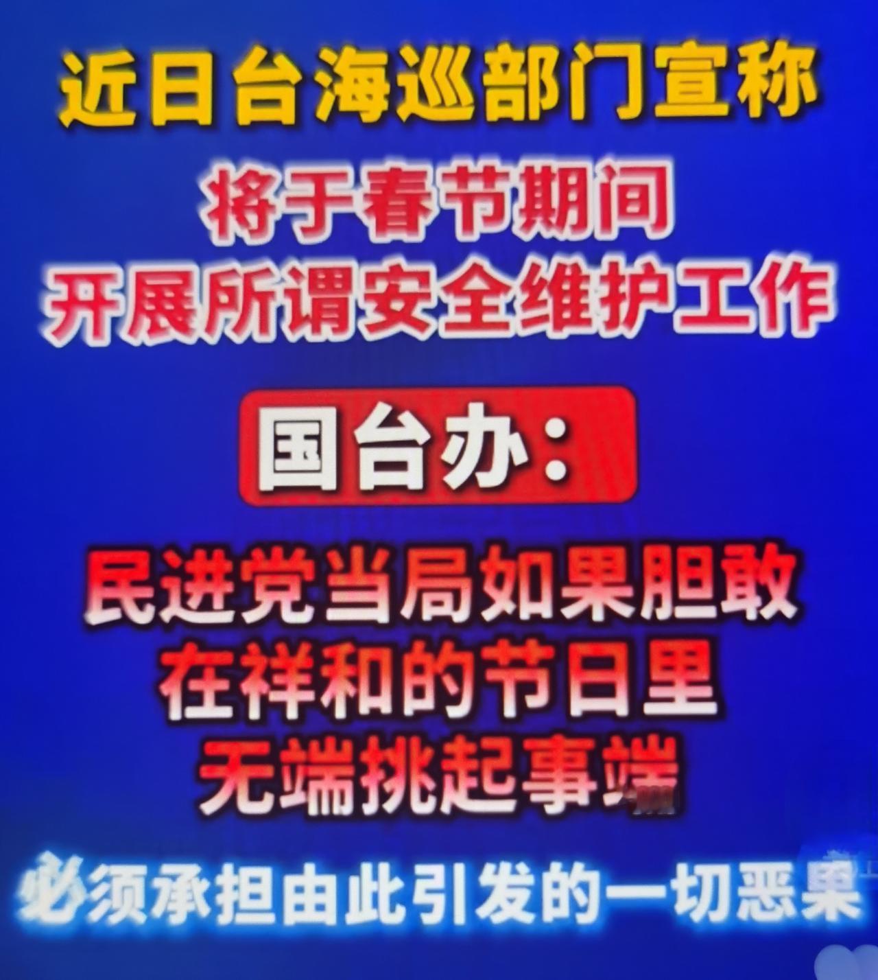 最近台海巡部门公开宣称春节期间开展“安全维护”,动员舰艇、制造对抗姿态,借节日渲染“大陆威胁” - 大陆严正警告:国台办朱凤莲明确表态——“民进党当局如果胆敢在祥和的节日里无端挑起事端,必须承担由此引发的一切恶果”,无任何回旋余地 台当局为何选春节挑事? 1. 政治操弄,谋独造势 - 借节日敏感节点刷存在感,把团圆节变成“谋独秀场” - 以“安全”为幌子,制造对立、煽动民粹,巩固绿营基本盘 - 配合去中国化,割裂两岸文化与民族情感 2. 试探底线,测试反应 - 用低烈度挑衅(海巡而非军方)测试大陆容忍度,为后续动作铺路 - 赌大陆“春节维稳”会克制,趁机切香肠 3. 倚美谋独,外部勾连 - 配合美日春节军演,同步造势,凸显“外部支持”假象 - 借节日挑事,把台湾问题国际化,拉外部势力介入 大陆警告的三层深意 1. 底线清晰:节日安宁+国家主权,双重红线 - 春节是民族情感纽带,破坏祥和=挑战全体中华儿女情感 - 主权底线寸步不让,任何挑衅都视为触碰红线 - 警告无模糊、无妥协,释放零容忍信号 2. 后果明确:反制全面、代价沉重 - 军事:解放军由训转战,环台警巡可快速升级为实弹封控/联合打击 - 经济:暂停惠台、收紧经贸、压缩台企大陆市场,冲击台湾经济 - 法律:触发《反分裂国家法》,非和平方式随时可用 - 国际:进一步暴露“台独”本质,压缩国际空间 3. 立场坚定:决心+能力+大势 - 捍卫统一的意志坚如磐石,不因节日动摇 - 拥有压倒性军事能力,反制“台独”毫无悬念 - 统一是历史大势,任何分裂行径必败 怎么看待这一警告? 1. 性质:精准反制+强力威慑 - 直击台当局借节挑事的险恶用心,戳破“安全维护”伪装 - 用最直白、最严厉语言,打消其“节日可挑衅”的幻想 - 既是政治警告,也是军事动员令,战备进入高度戒备 2. 本质:以稳控乱、以压促和 - 核心是遏独,阻止台当局借节日升级对抗、破坏台海稳定 - 同时留空间:只要不挑事,两岸仍可保祥和、促交流 - 展现战略定力:不冲动、不示弱,斗而不破、以压止独 3. 前景判断 - ✅ 短期:台当局大概率收敛,不敢真挑事;大陆加强战备,海空警巡更密集 - ⚠️ 中期:“台独”挑衅不会停止,会换方式(如勾连外部、操弄议题)继续试探 - ✅ 长期:大陆反制能力持续提升,“台独”空间越来越小,统一大势不可逆转 这是大陆对台当局春节挑事的最强硬、最清晰、最无退路的红线警告,既是民族情感捍卫,也是主权安全宣示;台当局若执意玩火,必将自食恶果、万劫不复。