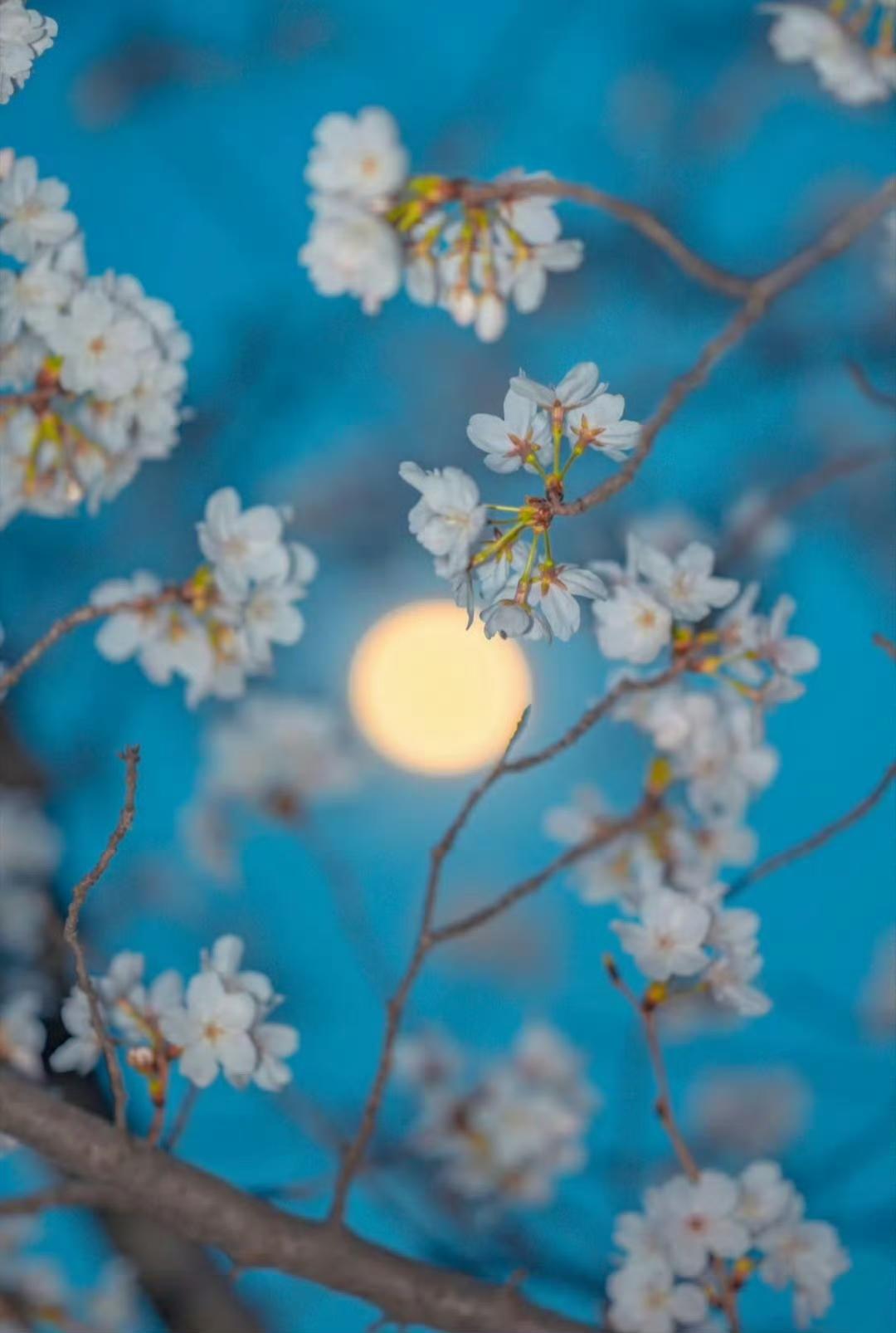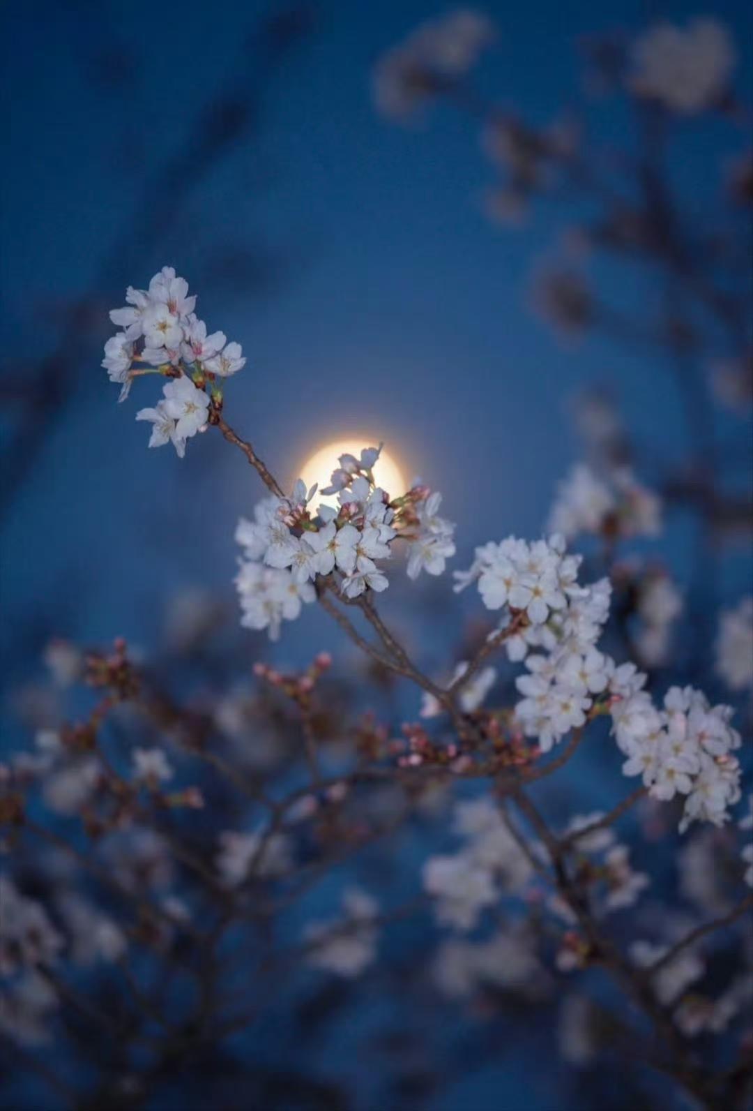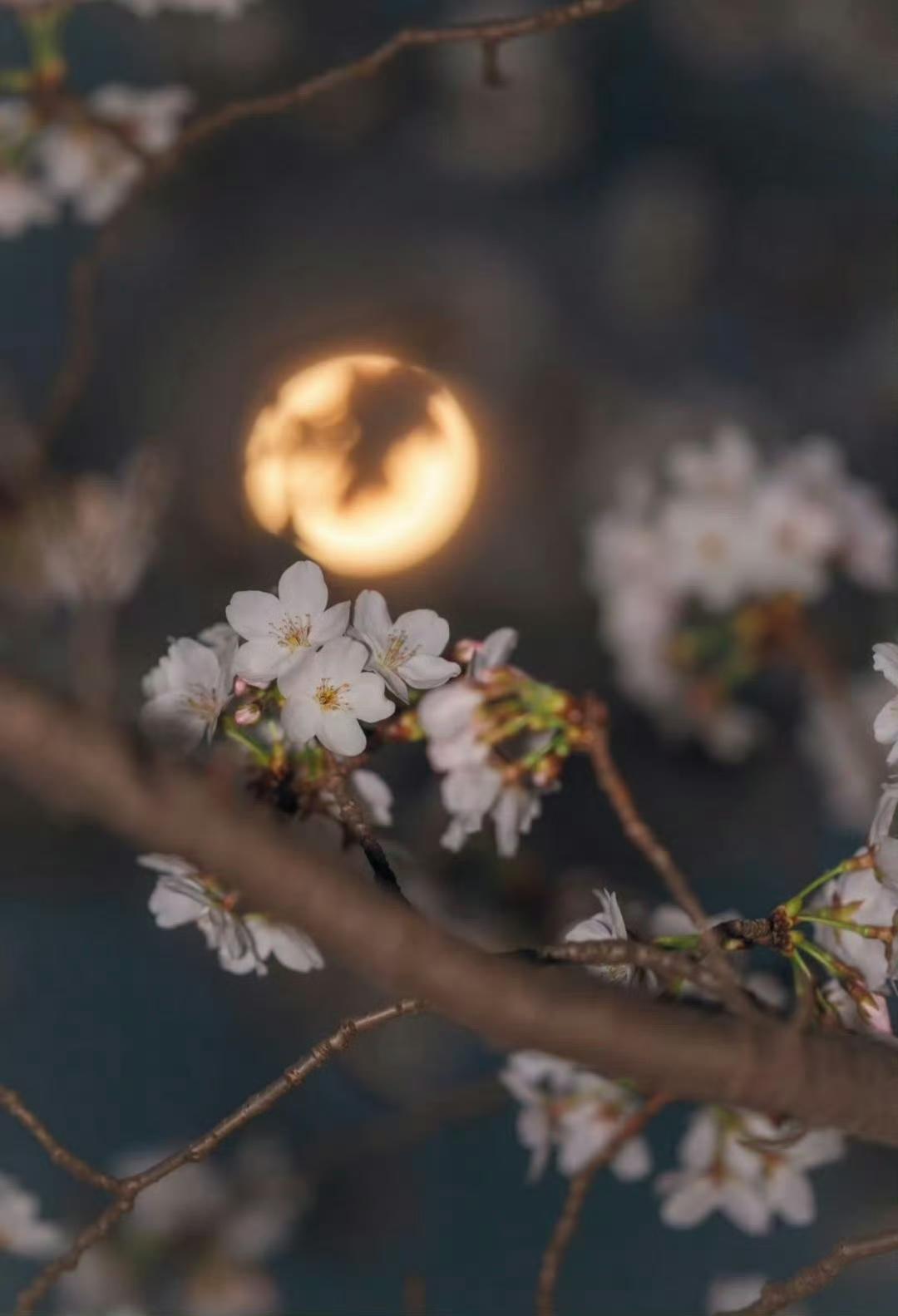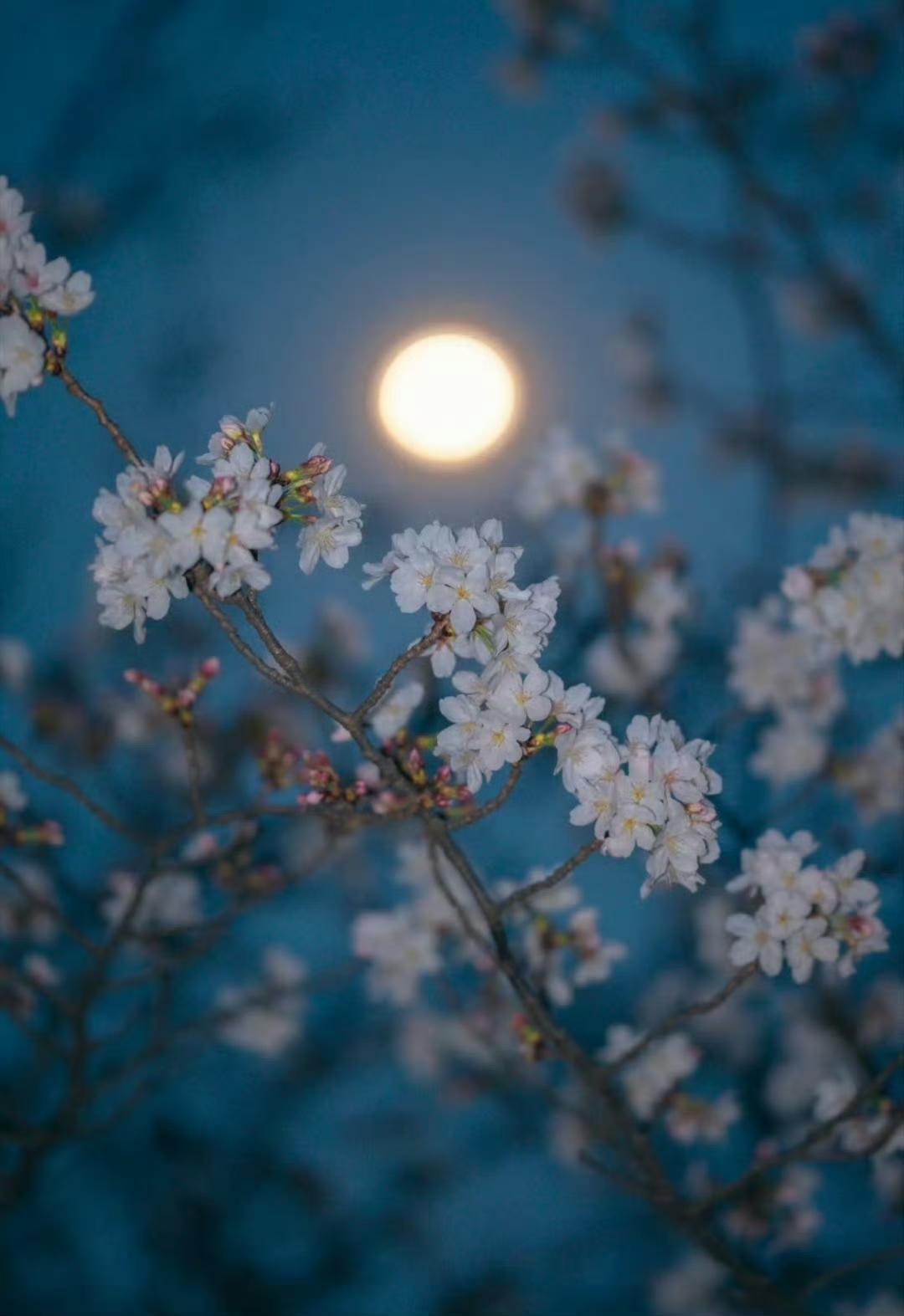 月亮🌕高挂,樱花🌸盛开,春风拂面,浪漫满天 摄影 美图