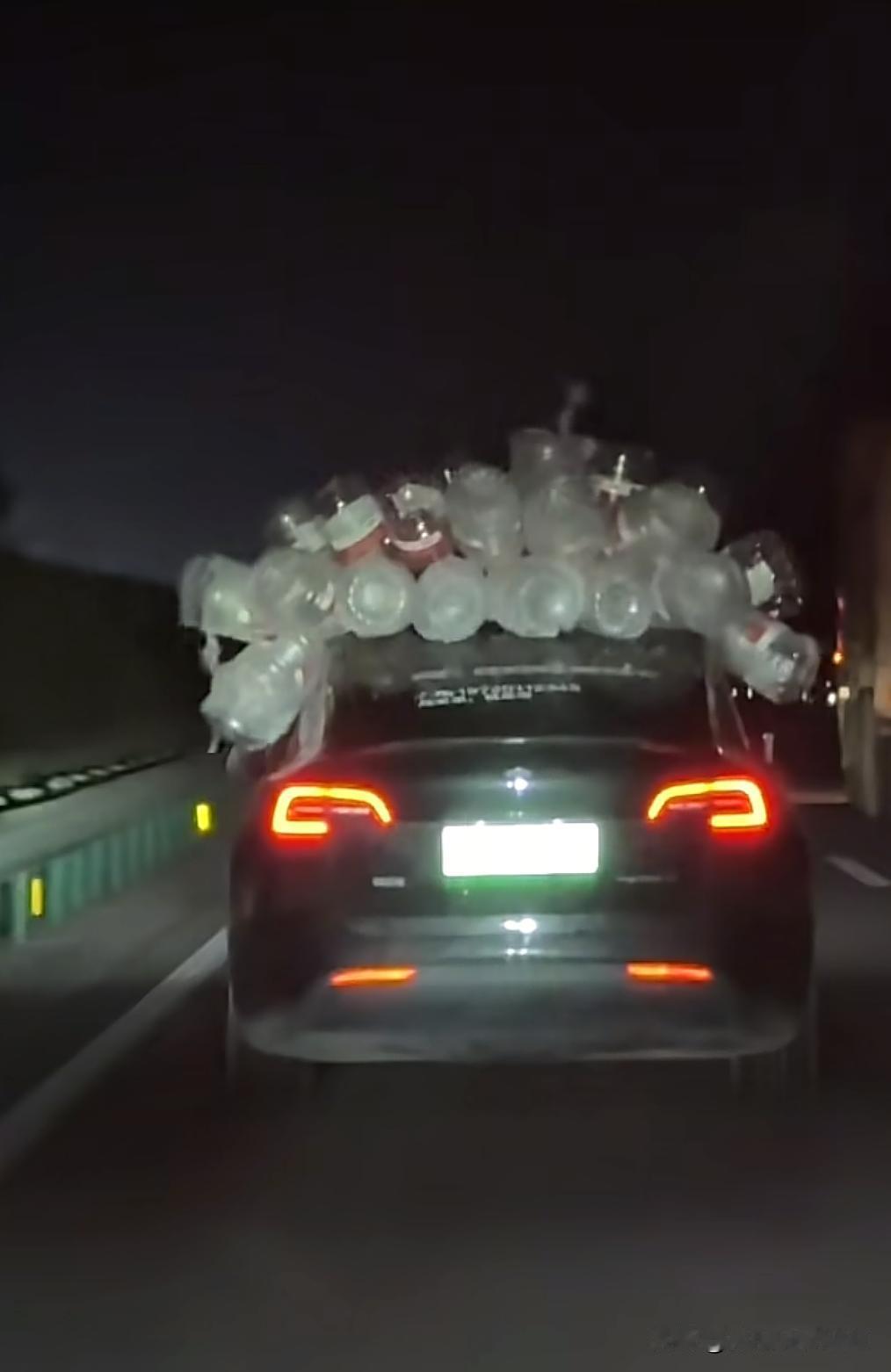 难道这特斯拉车主回家还用瓶子来换电?[捂脸] 我觉得那这些瓶子是他家里老人家要做辣椒酱,淹在缸里不方便带,父母嘱咐孩子往家里带点瓶子吧[捂脸]