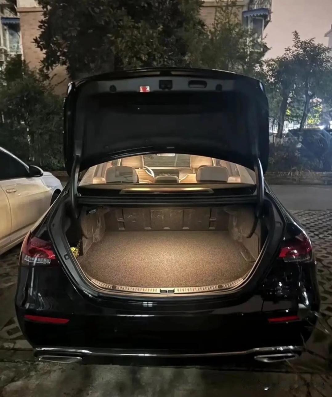 同为“油改电”的插混,奔驰E350eL的后备箱虽然全平,但实战还不如“七座雅阁”能装。因为地板高得太离谱,内部高度只有30cm出头,28寸行李箱都塞不进去。插混雅阁的后备厢好歹靠外的部分高度还是正常的,里面鼓包上的竖向空间也不比插混奔驰E小,塞完28寸箱子之后外面还有很大余量装别的。所以乍一看奔驰E这后备厢更规整,其实稍微方一点的大件就塞不进去了。