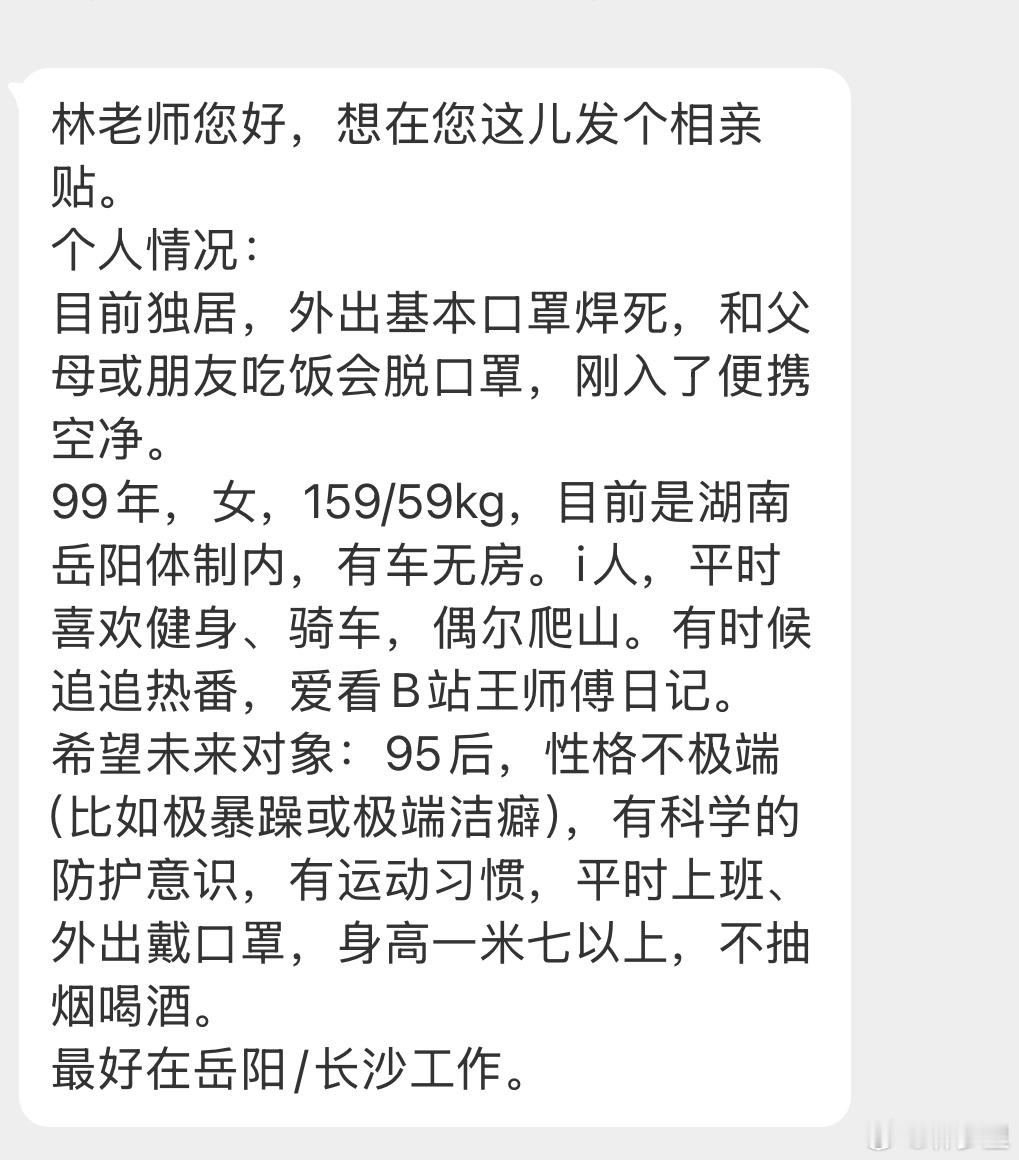 发个相亲贴,湖南女孩。有想法的留言。