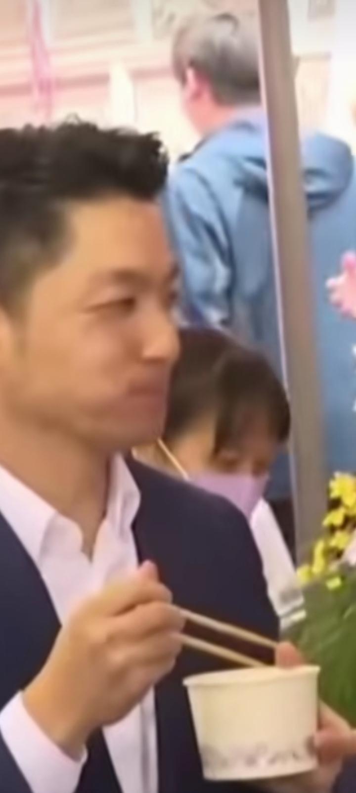 台北市长蒋万安街头吃饭,纸饭盒卫生筷,狼吞虎咽市井小民,芸芸众生之一员。