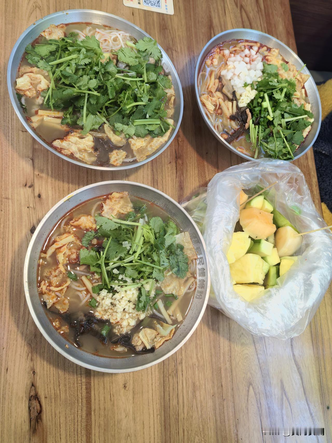 今日恰逢南方小年,也就是腊月二十四,来到了广西贺州。到了这里,远东新天地旅游步行街是不可错过的地方。在那儿,打卡了始创于1979年的老字号《爱民螺蛳粉》。点了原味和三鲜螺蛳粉,不得不说,这味道实在是太赞了!粉很有劲道,汤头浓郁鲜香,配菜也颇为丰富。原味的口味醇厚,三鲜的则多了海鲜的鲜美。 同时,我还买了份玲姐家水果酸菜。这水果酸菜酸辣可口,与螺蛳粉搭配在一起,口感上酸辣交融,层次丰富,别具一番独特风味。这一趟贺州之旅,单是这些美食就已让我觉得此行不虚了!