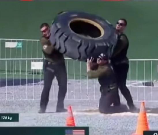 美国特警这也太弱了,3个人抬120公斤轮胎,1个人40公斤、80斤,不就是一袋子小麦吗,中国老农民都能举的起来!再看中国四川女子特警队,抬起来轻轻松松,一路小跑到终点,不知道美国特警那么大块头,力量在哪里,平时怎么训练的!在迪拜48个国家参赛,这一波出糗出大了,中国女子特警队威武!