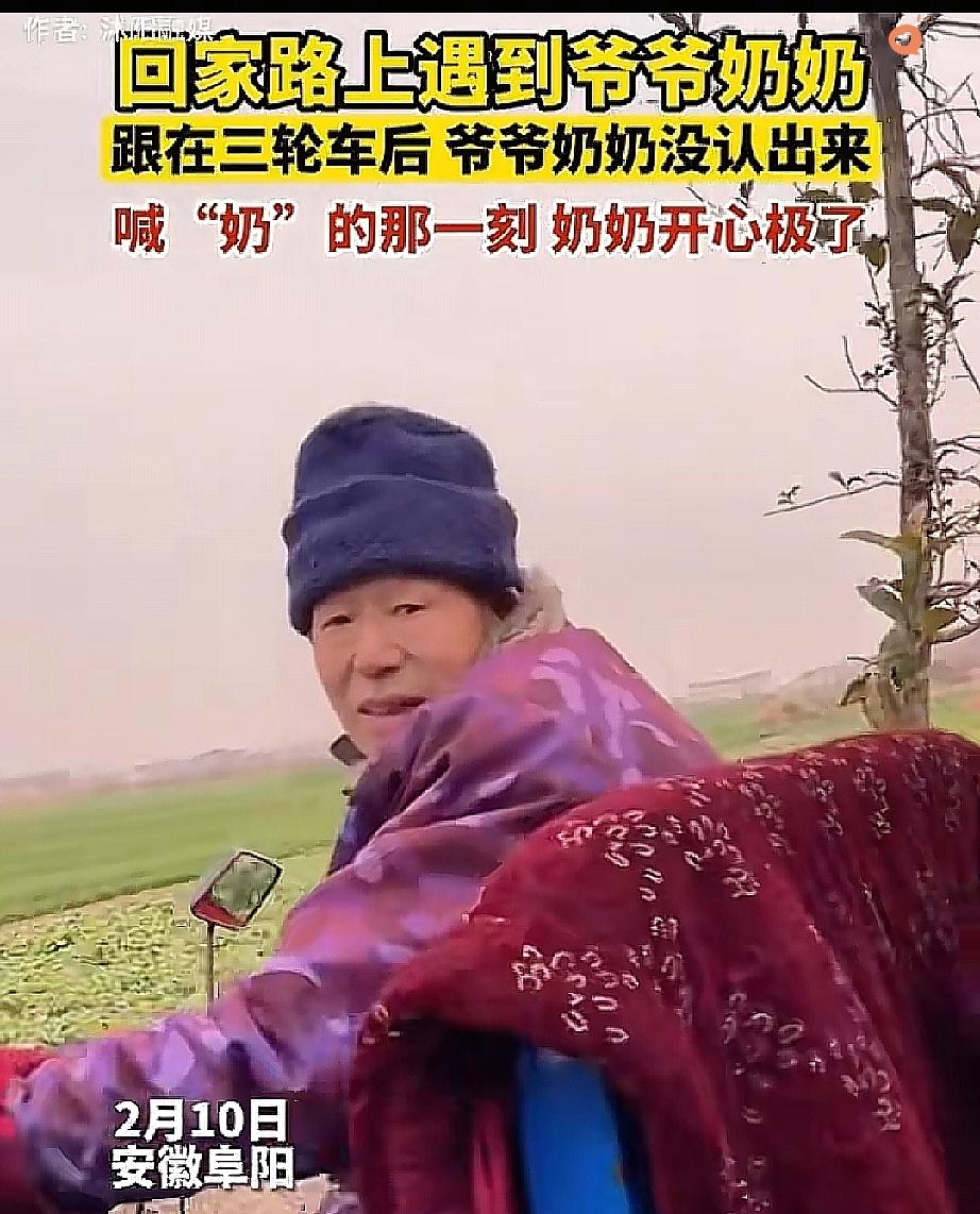 奶奶拍手大笑的瞬间,看哭无数人,这才是过年最珍贵的画面。 安徽女子开车回家,远远看见爷爷骑着三轮车带着奶奶,她故意悄悄跟在后面,想给老人一个惊喜。 奶奶没认出是孙女,还一直贴心让爷爷靠边,怕挡了后面的车。这份刻在骨子里的善良,真的太戳心。 当一声熟悉的“奶”喊出口,奶奶瞬间笑到拍手,爷爷也激动回头。 没有华丽的场面,没有贵重的礼物,最简单的相见,却藏着最满的思念。 我们总忙着赶路、忙着赚钱,却忘了老人最想要的,只是你平平安安出现,喊他们一声,陪他们闹一闹。 长大后还能被爷爷奶奶捧在手心里,就是这辈子最大的福气。 你多久没见家里的老人了?有没有过这样让人瞬间泪目的温暖瞬间?