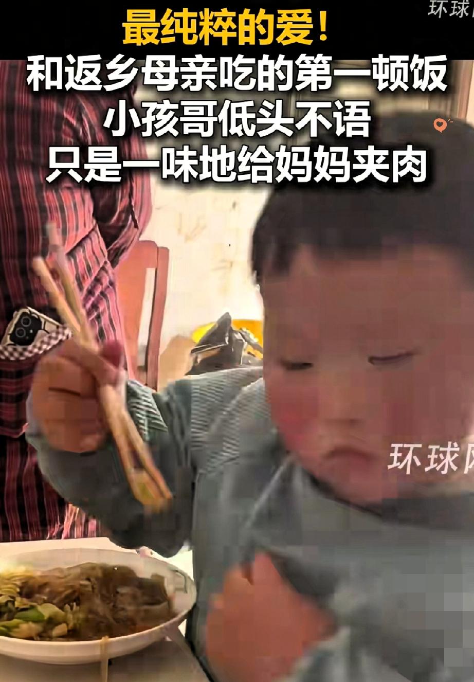 4岁儿子把碗里的肉全夹给妈妈,这一幕看哭多少打工人父母。 年轻妈妈在外打工一年才回家,吃饭时孩子默默把肉都推给妈妈,还说自己只爱吃菜。 妈妈一开始没多想,直到奶奶告诉她,这是孩子平时最爱的东西,瞬间破防大哭。 小小的年纪,不懂什么是深情,却把自己最喜欢的东西,全都留给最想念的妈妈。 他在用最笨拙、最纯粹的方式,诉说一整年的思念。 我们总在为了生活奔波,以为给孩子更好的物质就是爱,可孩子要的从来不是礼物,而是陪伴。 这份懂事让人心疼,更让人反思。 你家孩子有没有过这种让你瞬间泪目的小举动?