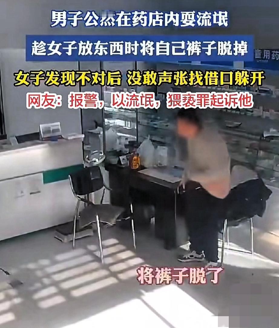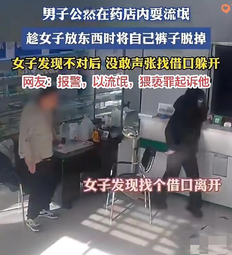 真的太恶心了! 辽宁一男子药店内公然耍流氓,老板娘的冷静做法,看完让人又心疼又佩服。 男子趁老板娘转身进里屋的几十秒,直接做出脱裤的不雅举动,毫无底线可言。 老板娘余光察觉不对,没有硬碰硬,也没有声张激怒对方,而是悄悄找借口离开,保护了自己和店里的老人孩子。 老公一开始气得质问老婆为什么不反抗,看完监控才明白,老婆不是懦弱,是顾全大局。 孤身面对陌生男子,硬刚只会把自己和家人置于危险中,冷静撤离才是最聪明的选择。 这种公共场所的不雅行为,既缺德又违法,必须受到谴责和处理。 女生在外遇到类似情况,安全永远是第一位,不盲目逞强才是真清醒。 你遇到这种事会怎么处理?觉得老板娘的做法对吗?