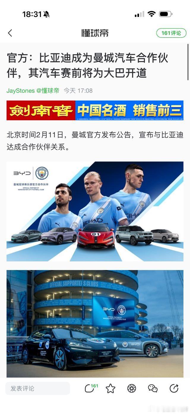 今天这事儿有点意思——比亚迪直接官宣成了曼城的汽车合作伙伴。