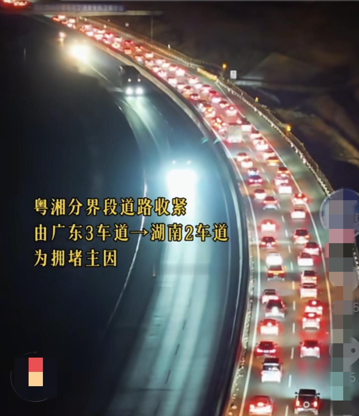2月11日凌晨0点30分左右,广东省通往湖南省的高速公路网,已经严重堵车了,广州,深圳,东莞,佛山……离开珠三角的高速公路网,今天晚上,一直堵车,也是严重堵车,2026年春节的返程自驾车高峰期提前来到了! 信息来源:航拍华南 你可能要问,这不还没放假吗?怎么高速就“炸”了? 这就是今年最让人头疼的地方。 官方早就预测了,2月10号和11号,也就是南方小年这两天,会是春运的第二波返乡高峰。 大家都想着赶在小年回家团聚,结果所有人的想法撞到了一起,车流就跟开闸泄洪一样,全堆在路上了。 光是2月10号那天,湖南那边预计的车流量就有455万辆次,压力山大啊! 而且你别看假期是后天开始,很多在广东打工的老乡早就请好假,提前开溜了。 所以,你以为的“提前”,在很多人那里已经是“正当时”了。 网上已经有人晒图吐槽了,说从深圳出发,吭哧吭哧开了9个小时,结果还没开出广东地界,不到30公里的一段路,能磨蹭7个钟头,真是能把人急出火来。 屋漏偏逢连夜雨,老天爷也不太给面子。 从9号开始,湖南、广东这边就降温下雨,山里一些地方,像雪峰山、南岭那边,搞不好路面都结冰了。 车子开起来更是小心翼翼,速度根本提不起来,这不等于给拥堵“火上浇油”嘛! 所以,你现在看到的,就是一场“人、车、天气”的三重叠加效应。 像是G4京港澳高速,从广州一路堵到韶关,特别是快到湖南的那个坪石北互通,简直就是个“网红堵点”。 还有乐广高速上的银盏隧道、梅花北服务区那段,车龙排得让人绝望。 不光去湖南的,想去广西、江西方向的,像沈海高速广州到湛江段,虎门大桥那段,也没好到哪里去,整个广东出城的“血管”好像都堵上了。 最经典的场面,在湖南郴州境内上演。京港澳高速宜章到资兴那段,还有许广高速的郴州段,红彤彤一片堵在地图上。 很多从广东过来的朋友,好不容易跨过了省界,以为胜利在望,结果一脚刹车,又陷入了新的“长龙阵”,心里那个滋味啊,真是没法说。 有人算过一笔账,今年整个春运,广东的车流量估计要破3亿车次,比去年还多。 而湖南和广东之间跨省的车流,可能超过3000万辆次,涨了一成多。 这么多车挤在这几天出门,高速路再宽也扛不住啊。 交警叔叔们也急,他们给出了“避堵秘籍”。 简单说,就是三个字:错开它! 高峰期一般是上午10点到12点,下午4点到晚上7点。 如果你还没出发,硬要11号、12号走,那真得做好“堵车自由行”的心理准备。 他们甚至建议,不如凌晨5点到7点,或者晚上10点以后再摸黑上路,说不定反而跑得快一些。 如果实在躲不开,又被堵在了京港澳上,记得可以试试转去乐广高速,或者干脆走下边的107国道缓一缓。 湖南那边有条新开通的醴娄高速,据说能分流不少沪昆高速的车,算是个新选择。 所以啊,现在还被堵在路上的朋友们,别灰心,你不是一个人在战斗。 打开双闪,保持车距,备点干粮和水,给家人报个平安。 虽然回家的路被拉得很长很长,但每一盏亮着的车灯,都是朝着同一个方向——家的方向。 这一刻的等待与焦急,都会在推开家门那一刻,化成一团温暖的烟火气。 春运高峰期虽然路堵,但心别堵,有钱没钱回家过年,每个人回家的心情都是非常开心的,祝大家都安全到家,过个好年。