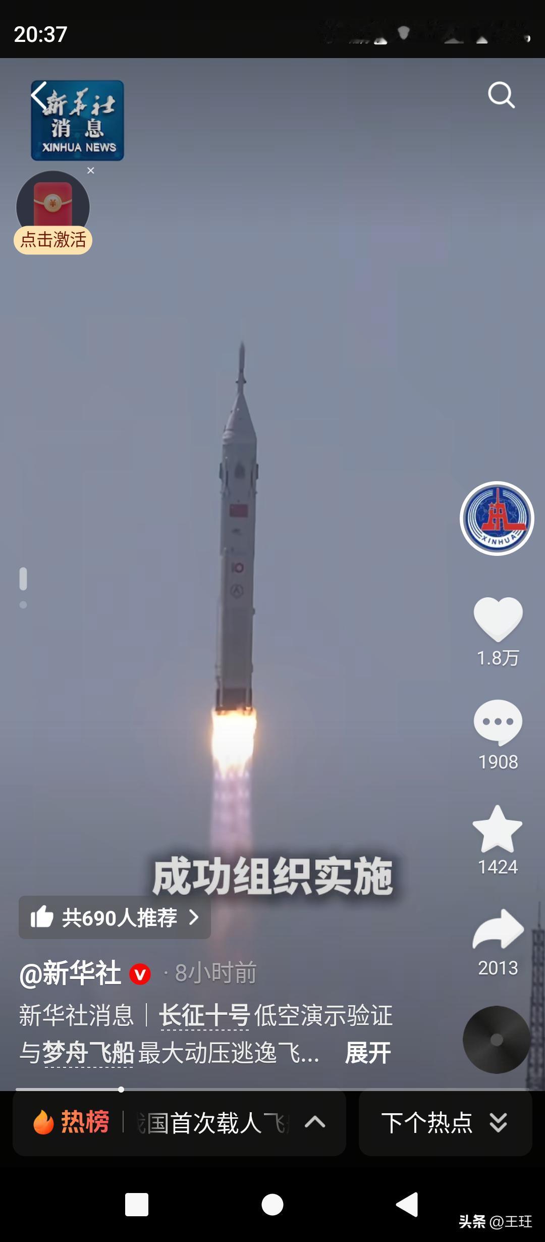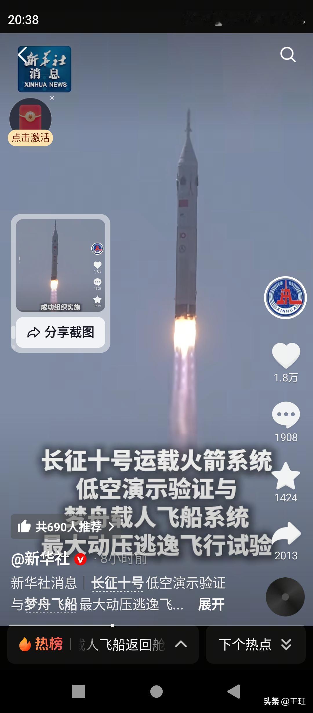 碧海接“神舟”!2026年2月11日,我国梦舟飞船返回舱在南海预定海域精准溅落,搜救分队12时20分完成回收,首次实现海上全流程回收。此次试验同步验证最大动压逃逸、火箭一级海上受控溅落等多项关键技术,标志着中国载人航天正式迈入“陆海并重”新时代,为载人登月筑牢安全屏障! 信息来源:今日头条、中华网
