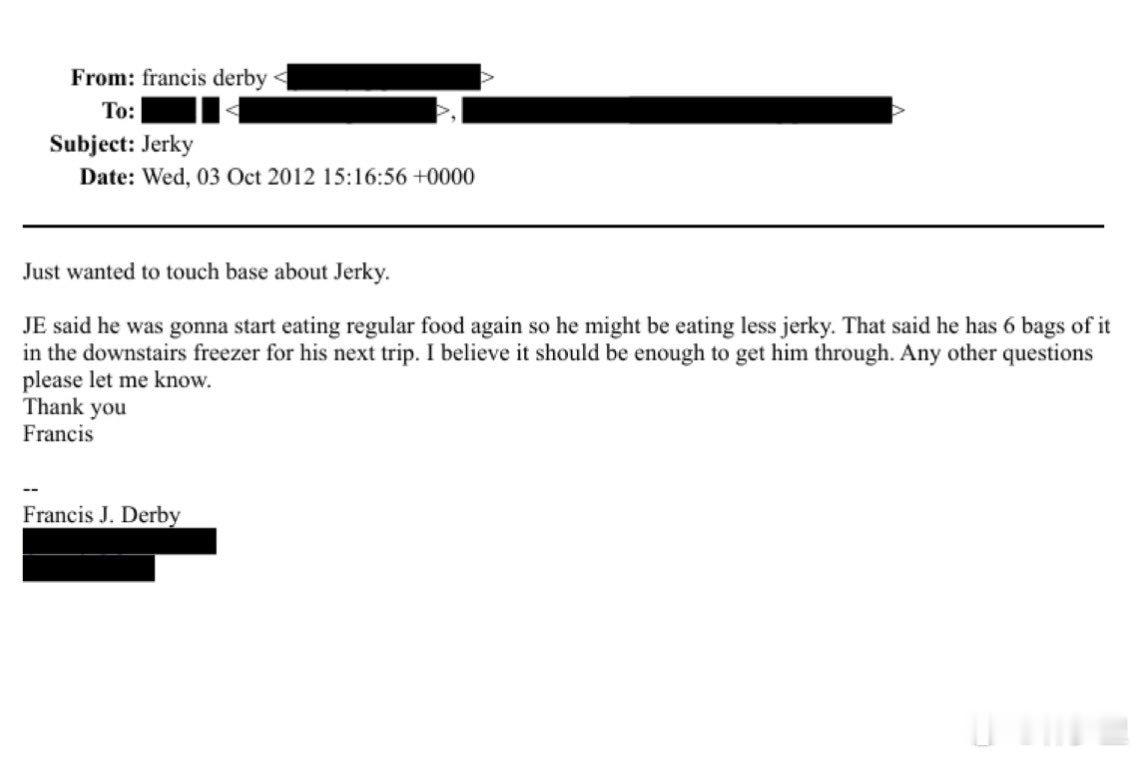爱泼斯坦档案的邮件中,写到一名叫做francis derby的厨师,图1图2图3。