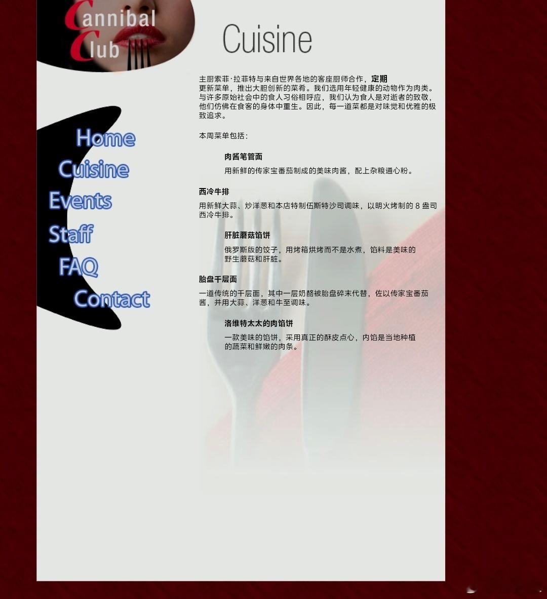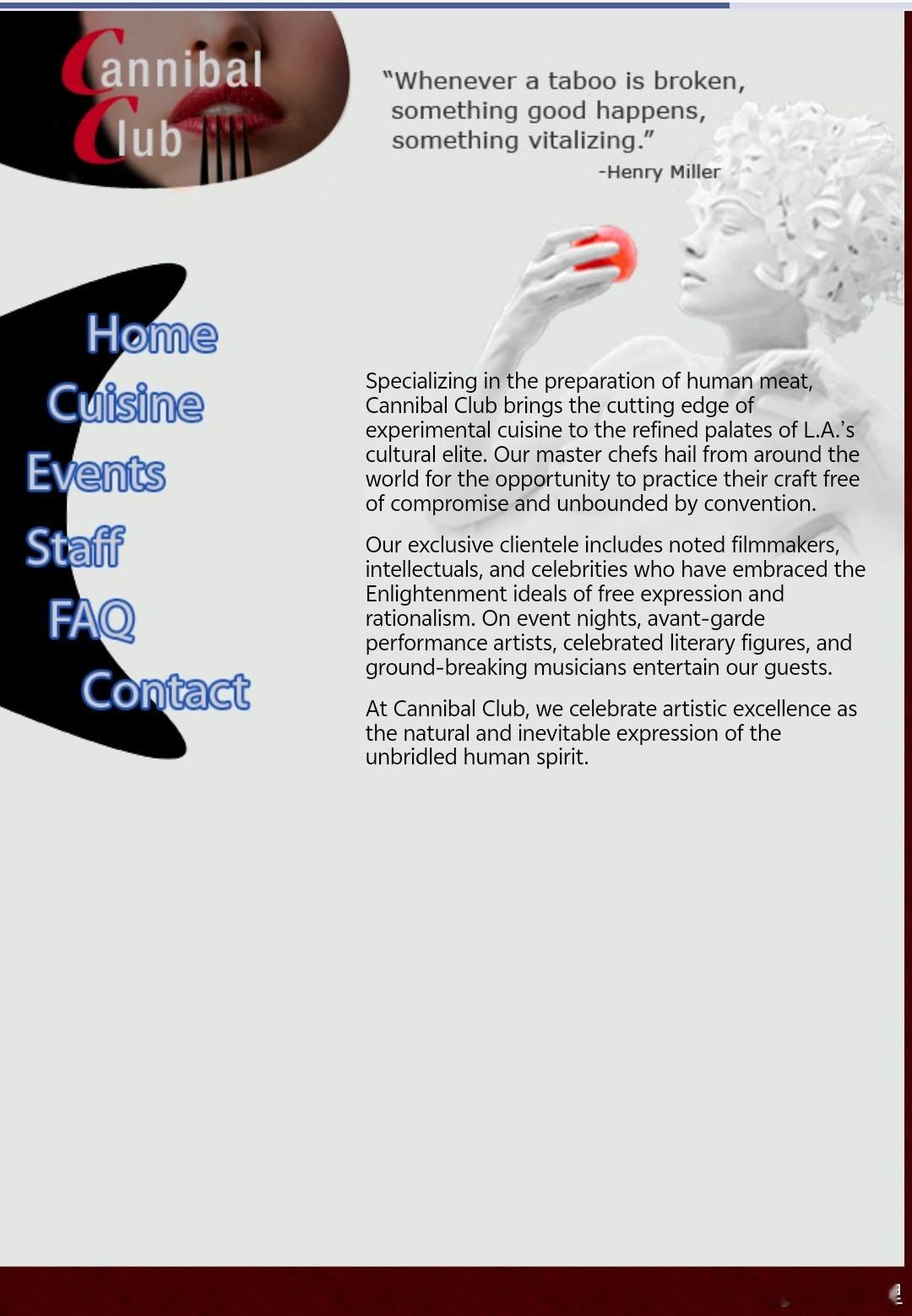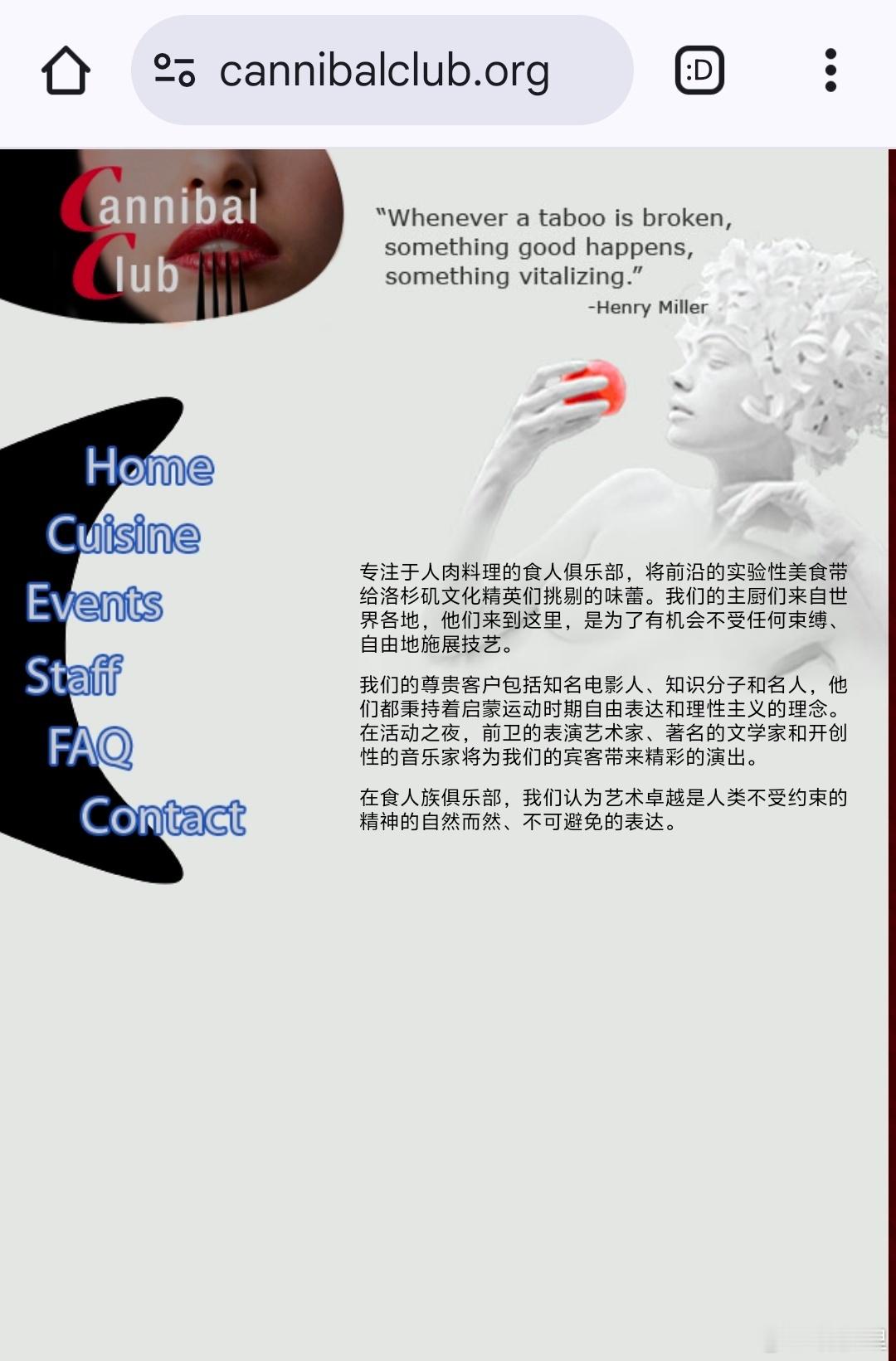 这家餐厅官网已经存在很多年了。主页介绍:“专注于人肉料理的食人俱乐部”,服务洛杉矶的精英,图7。