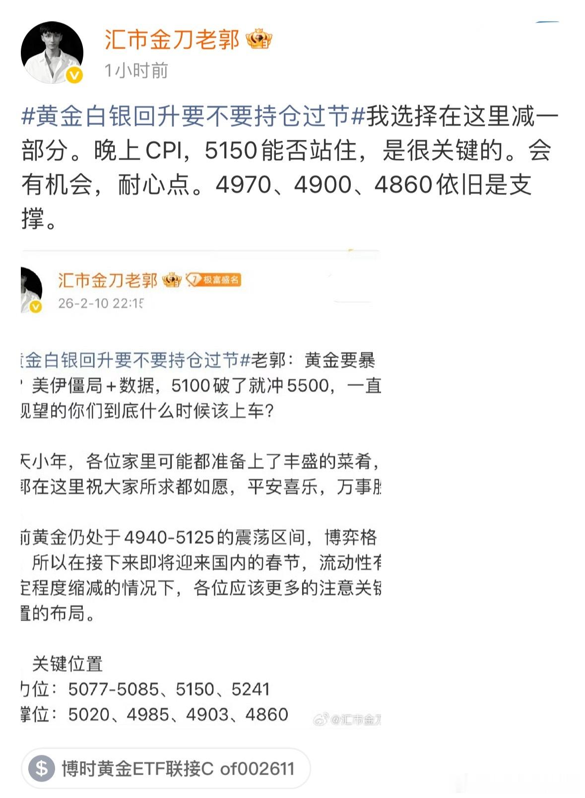 黄金白银回升要不要持仓过节老郭:黄金市场的十字路口,组合拳第二拳CPI来袭。注意