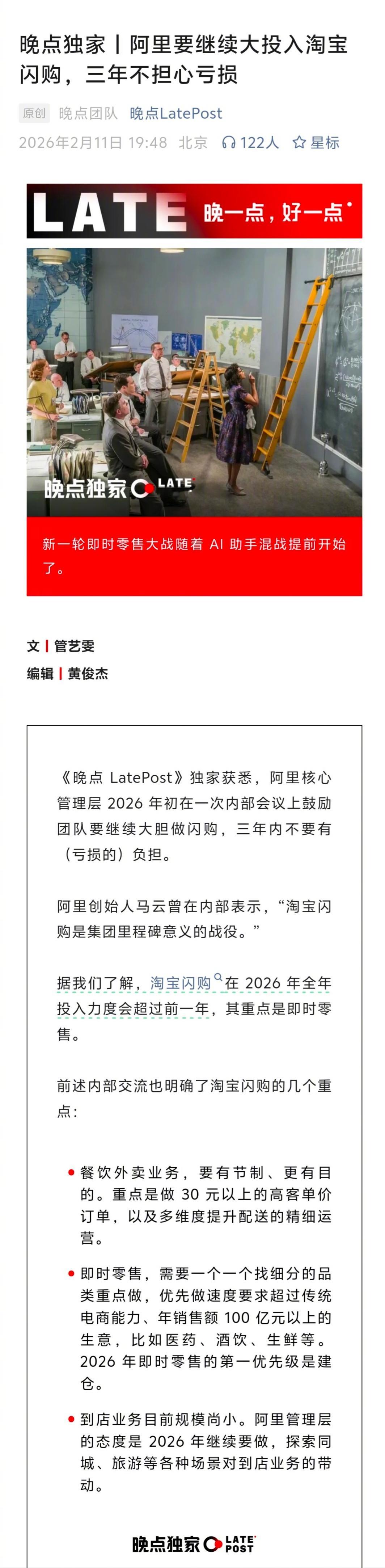 据晚点独家报道,阿里要继续大投入淘宝闪购,三年不担心亏损。