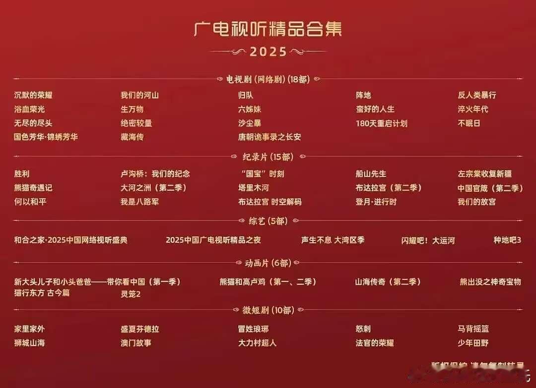 2025广电视听精品合集,2025广电年鉴 【电视剧(网络剧)】共18部:沉默的荣耀 我们的河山 归队 阵地 反人类暴行