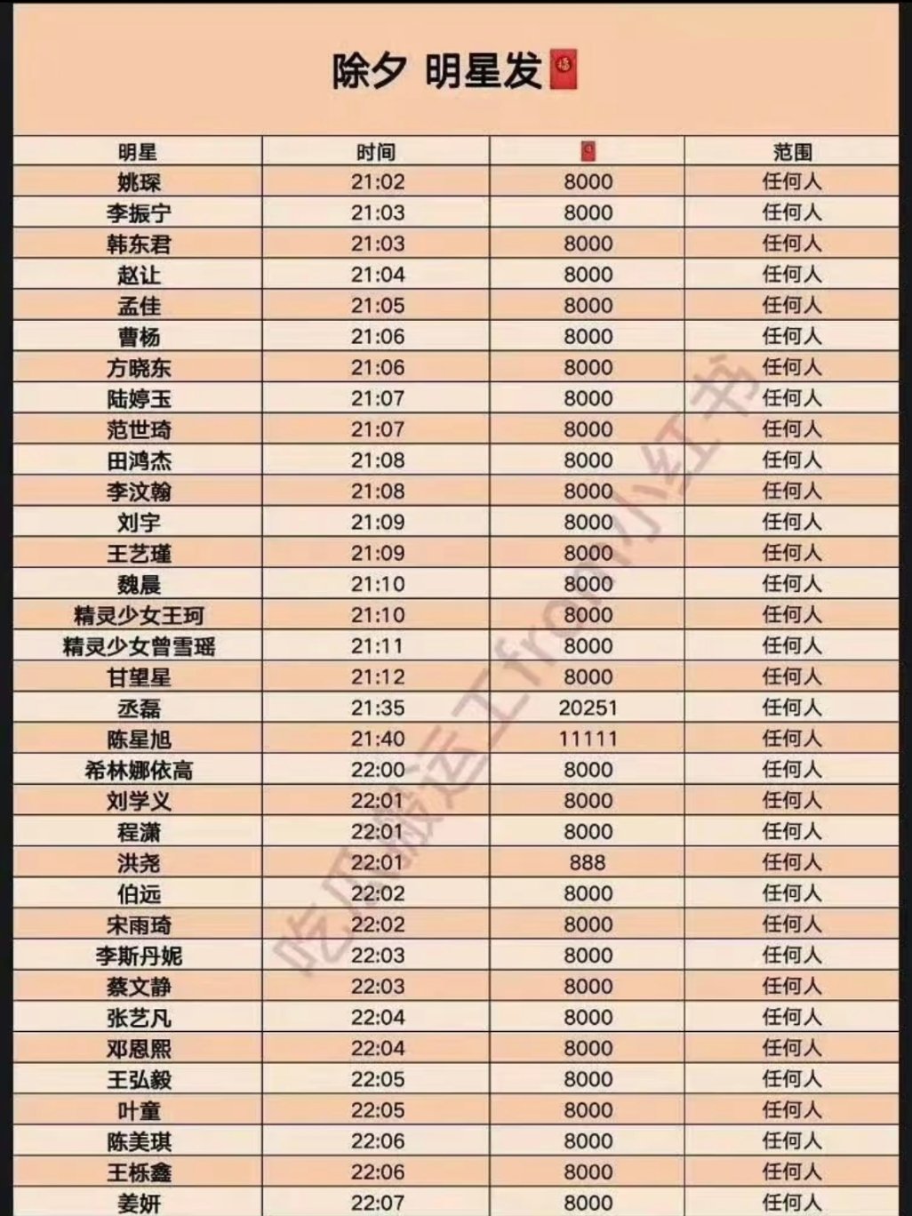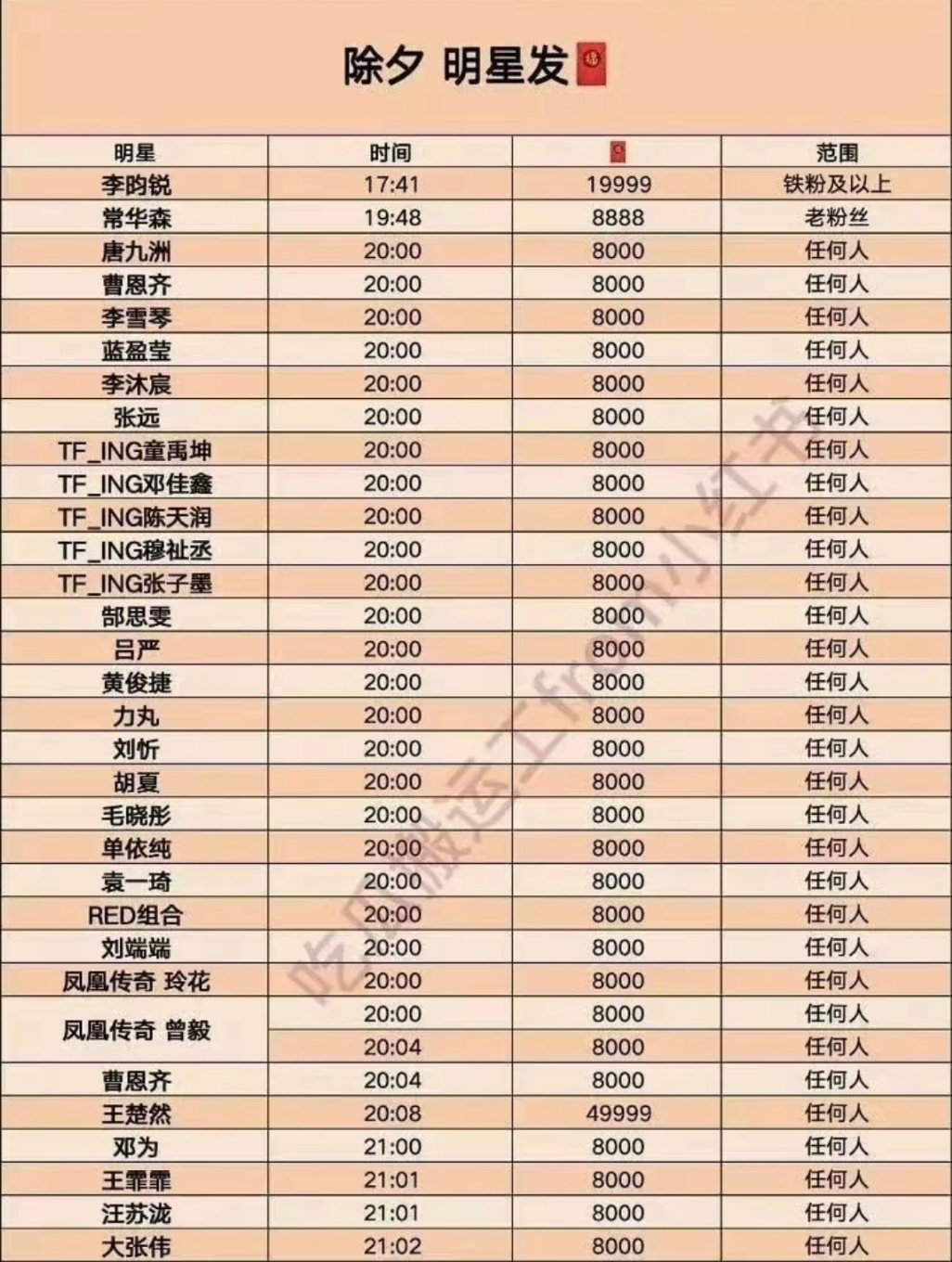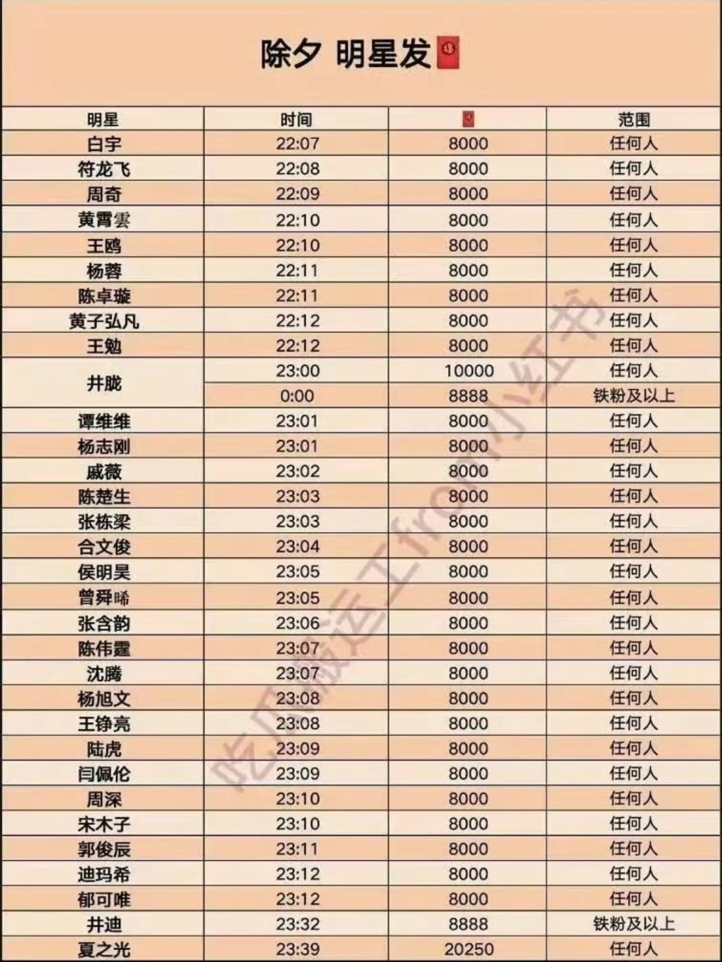 这里码一下 除夕夜发红包的明星 祝大家都能抢到17:00