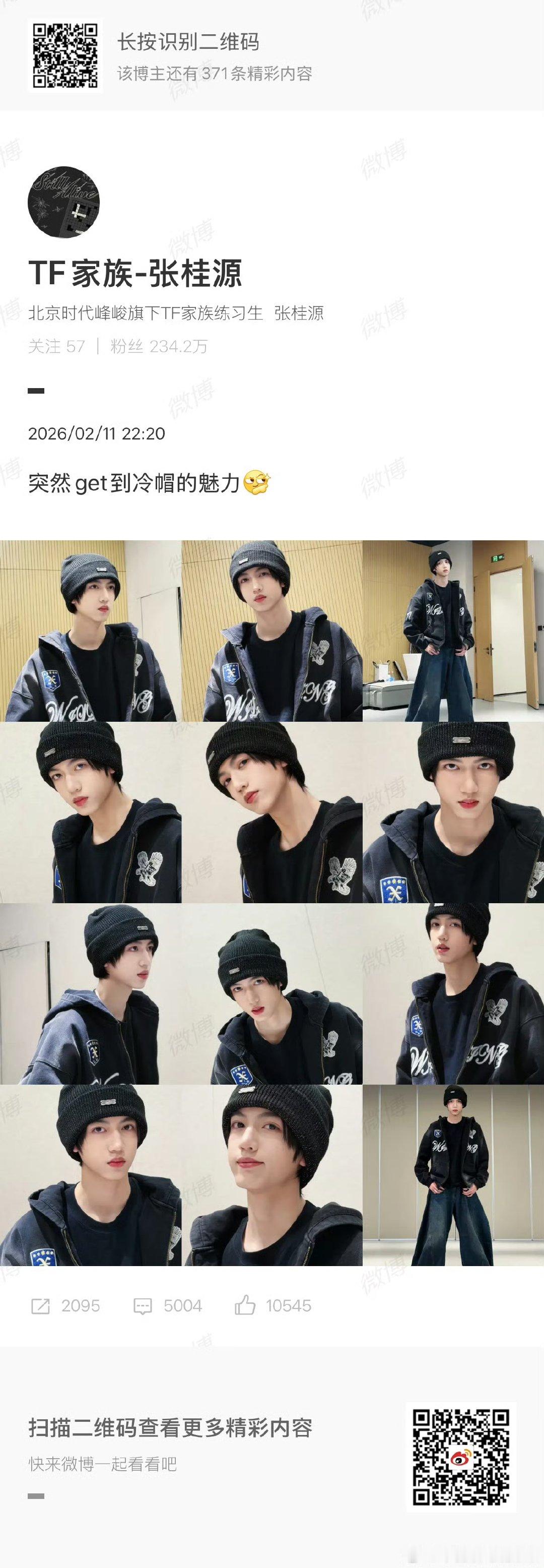 张桂源get到冷帽的魅力了张桂源黑色冷帽十二宫格 好适合冷帽呀!!张桂源