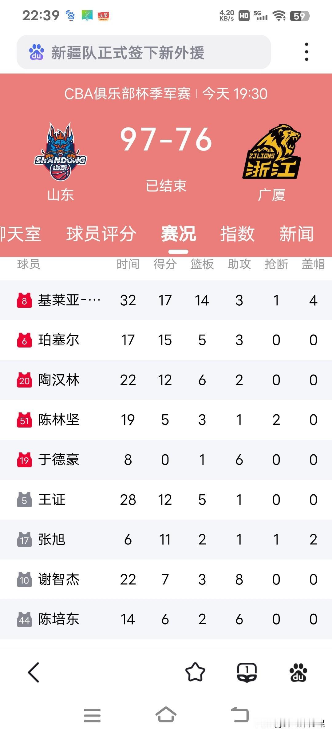 山东新外援狂砍豪华两双,山东队新赛季有望冲击四强。 刚刚结束的CBA俱乐部杯赛三,四名争夺赛,山东97:76狂胜广厦夺得俱乐部杯赛第三名,而新加盟山东队的外援琼斯全场出战32分钟,全场贡献17分14篮板3次助攻1次助攻4次盖帽,这可是琼斯刚抵达山东第一天的比赛数据,基本没有任何磨合的时间,直接安排首发登场,这实力真的杠杠的。 山东队这一补强直接提升球队内线的护框能力,而且琼斯并不是单纯的篮板型内线球员,他的进攻和防守,包括策应能力都非常全面,搭配陶汉林和克里斯这能全能型选手,山东队新赛季非常有望冲击四强。