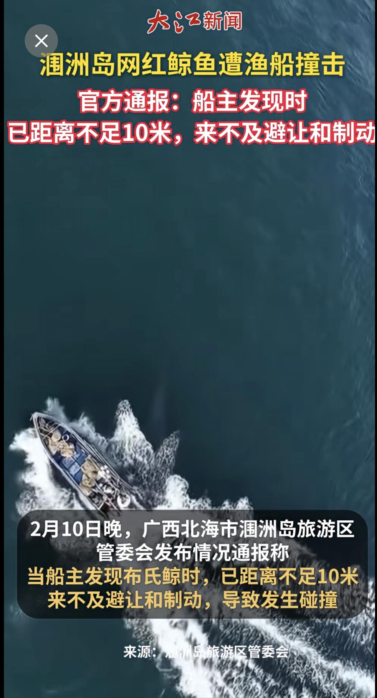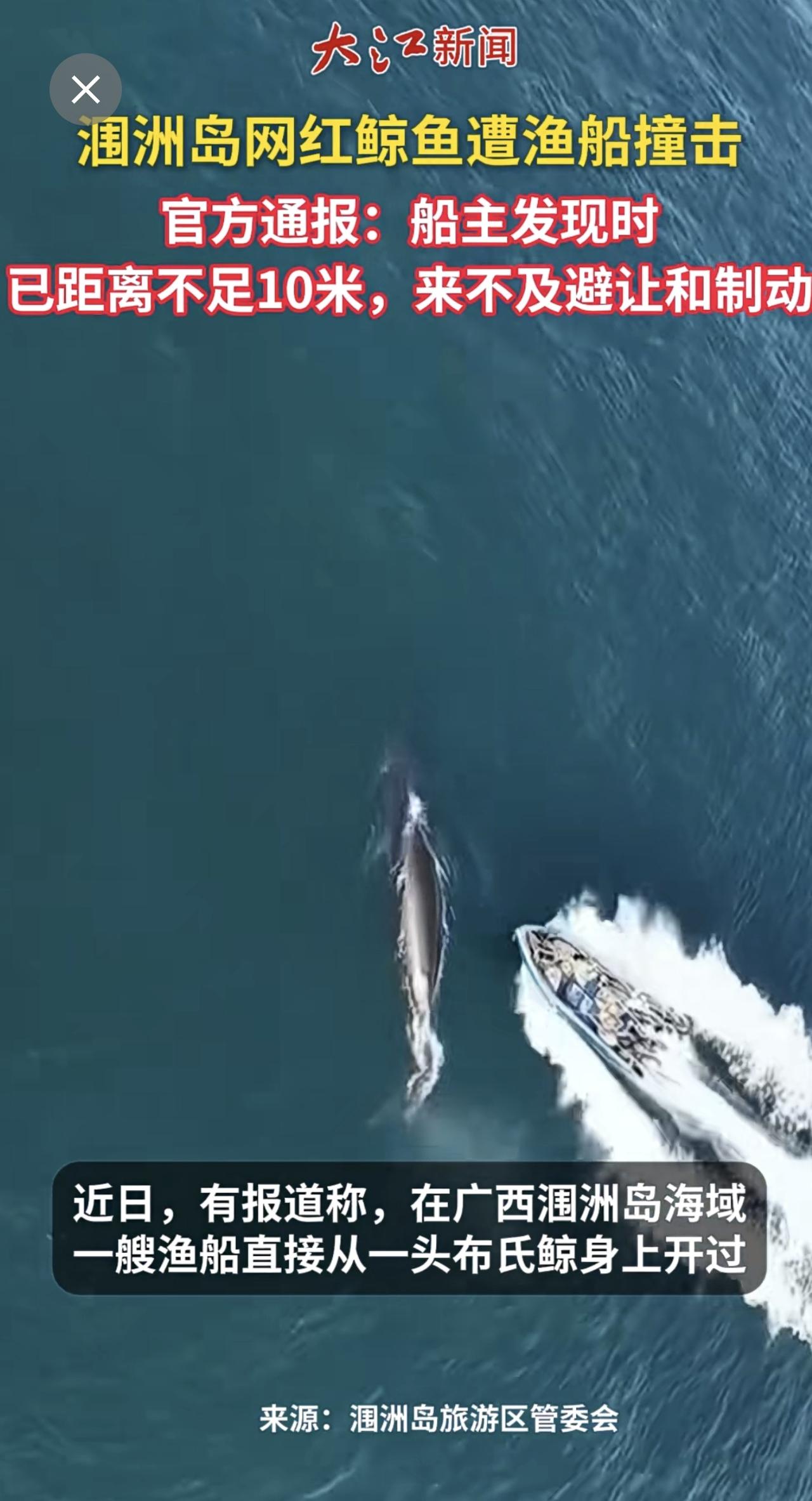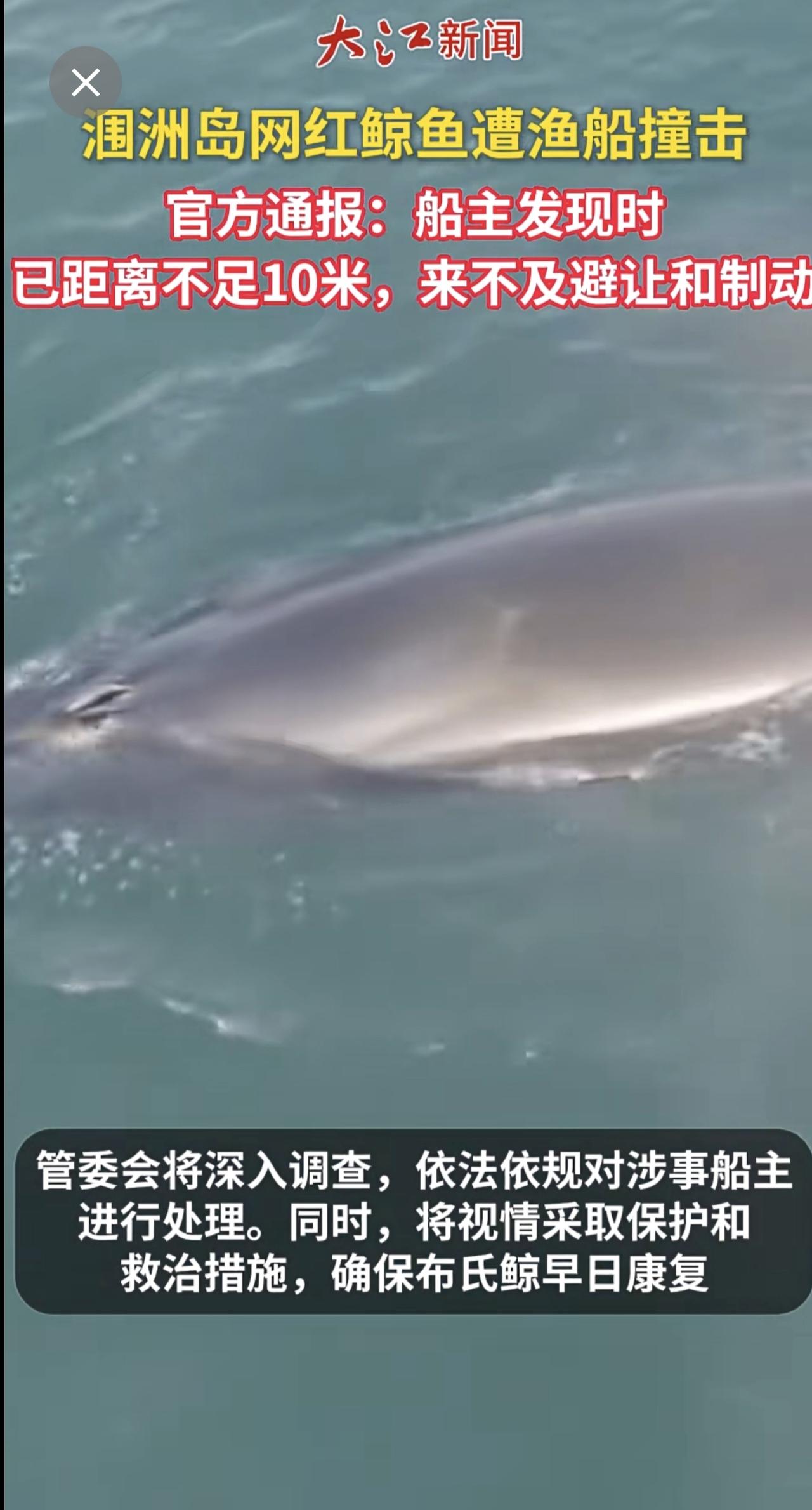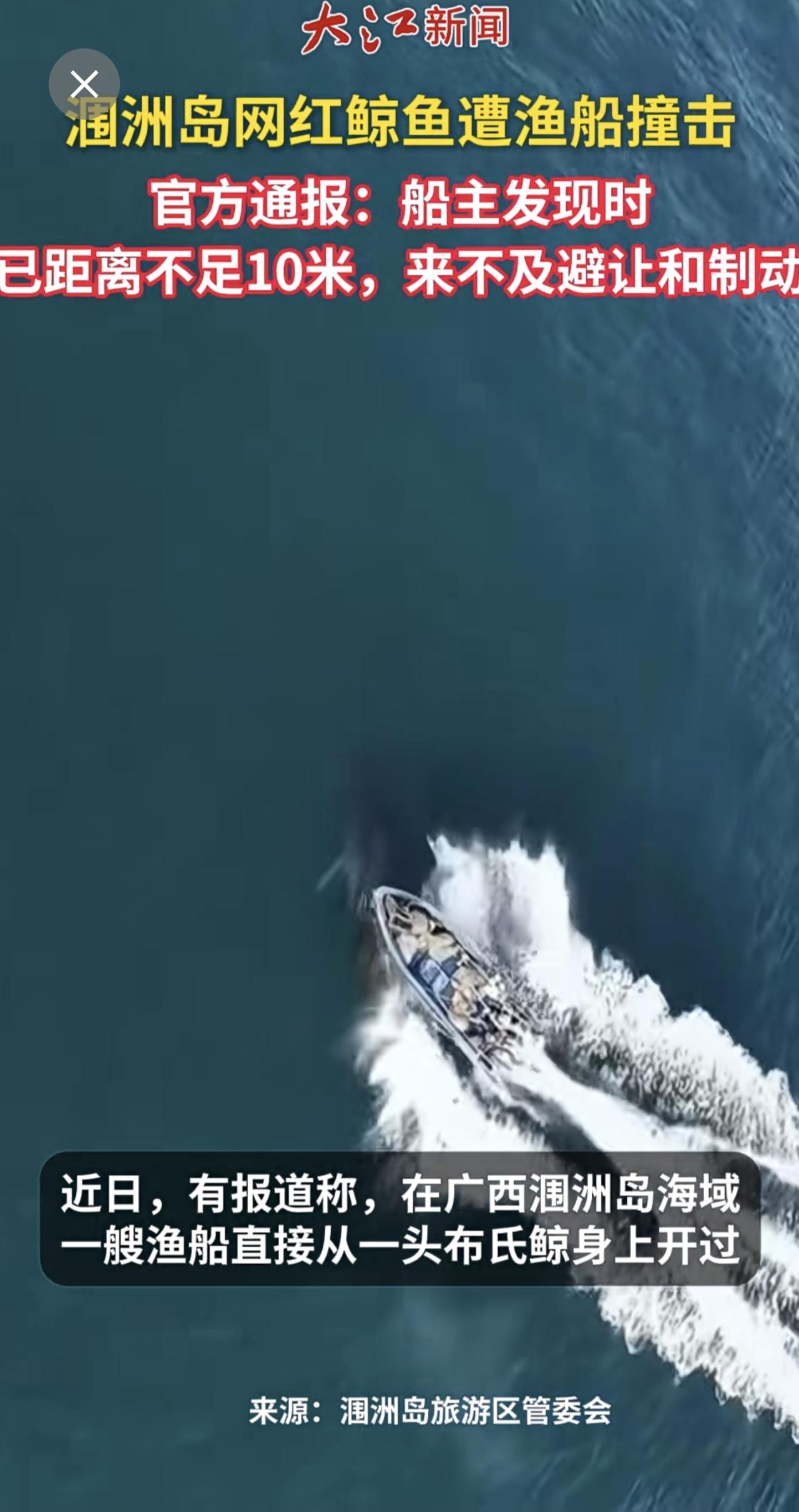 ,请一起关注一下这个事,涠洲岛好容易有了鲸鱼,有船故意撞它!!!而且鲸鱼受伤了!