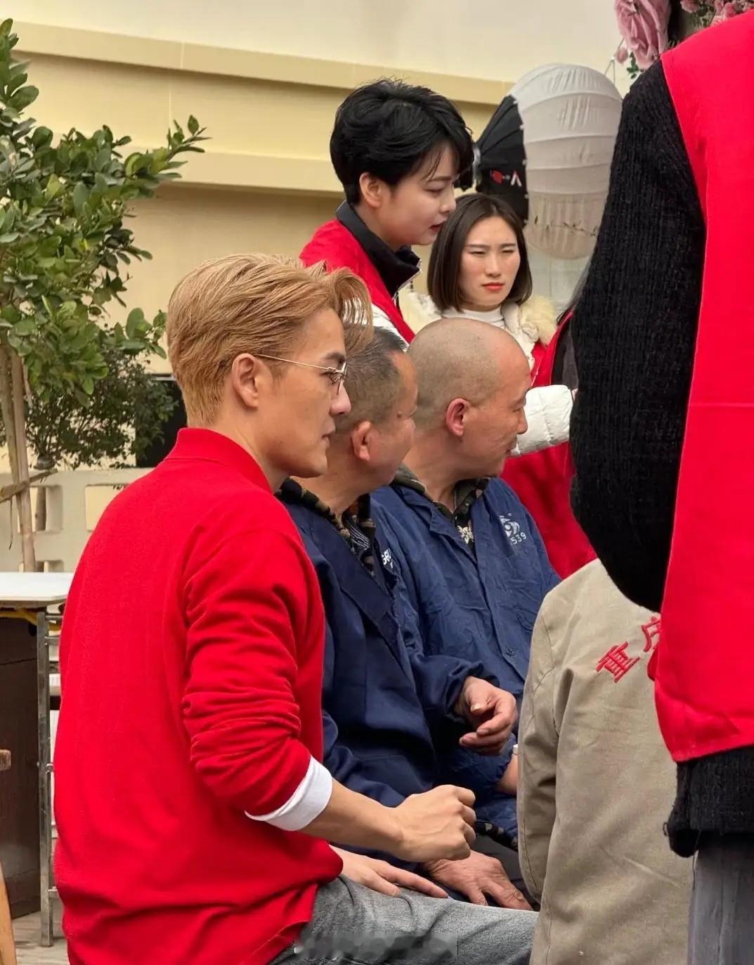 46岁吴克群现身重庆一家餐馆吃火锅,邀请了一帮农民工同桌吃火锅,他身穿大红色外套和牛仔裤,看上去很喜庆,染了时尚的棕发,身材高大健壮,状态看起来好年轻,乐于行善的他感觉越来越帅气了。